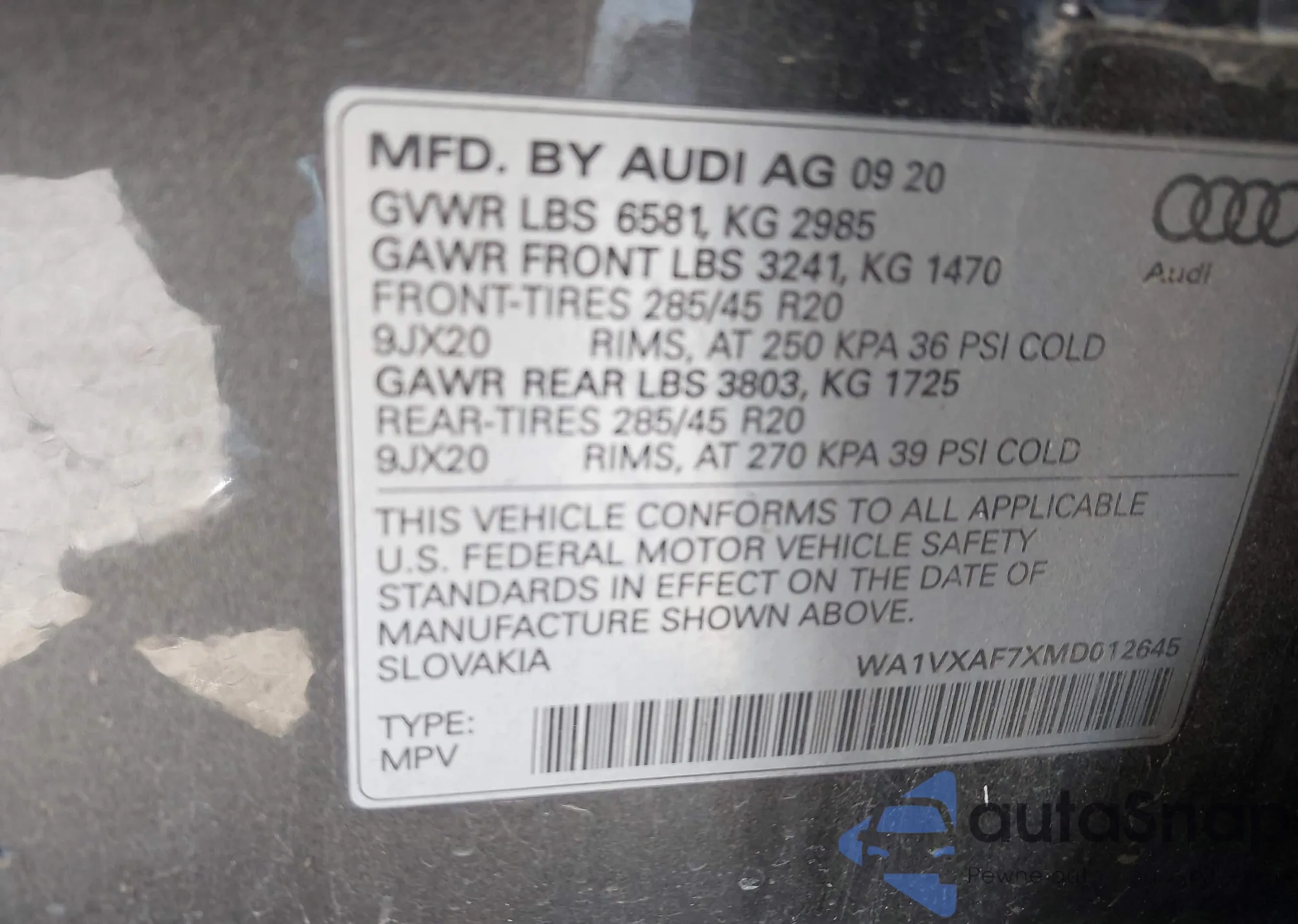 • VIN: WA1VXAF7XMD012645