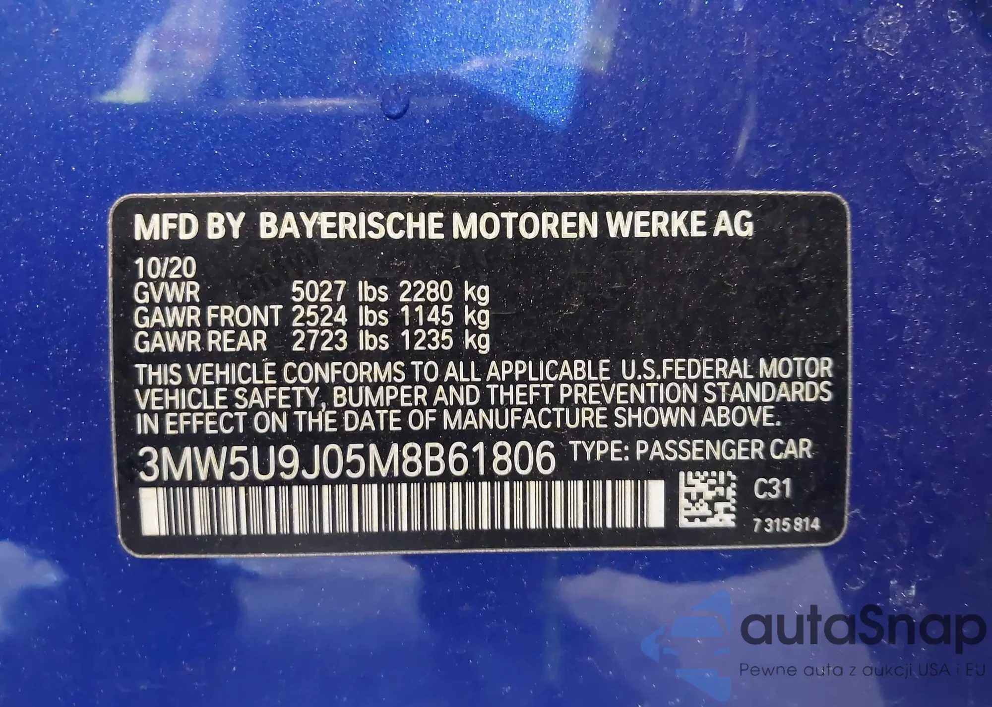VIN: 3MW5U9J05M8B61806