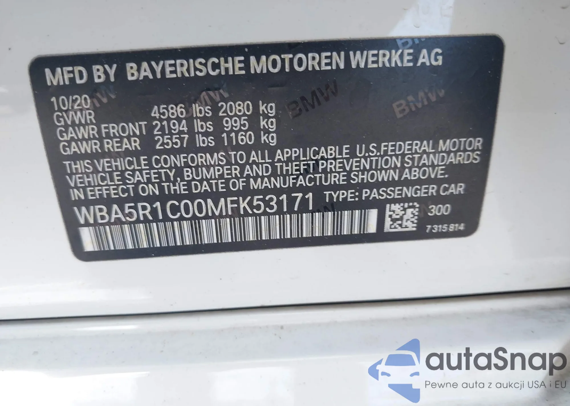 VIN: WBA5R1C00MFK53171