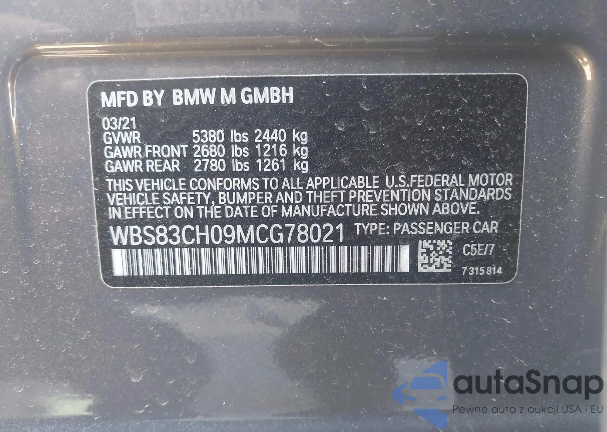 VIN: WBS83CH09MCG78021