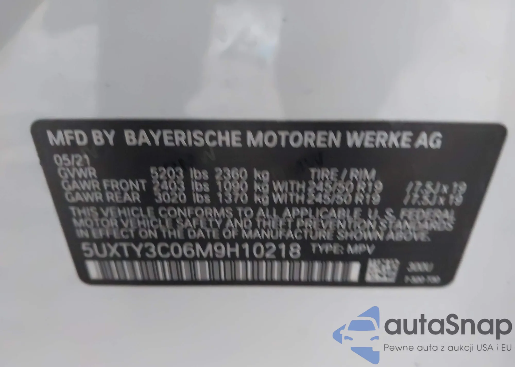 The car BMW X3 2021 (VIN 5UXTY3C06M9H10218) has not been auctioned before. The documents are clean, and the mileage matches or is below the market average. Sold by an insurance company – we recommend purchase. Delivery to the port will take approx. 6–8 weeks.