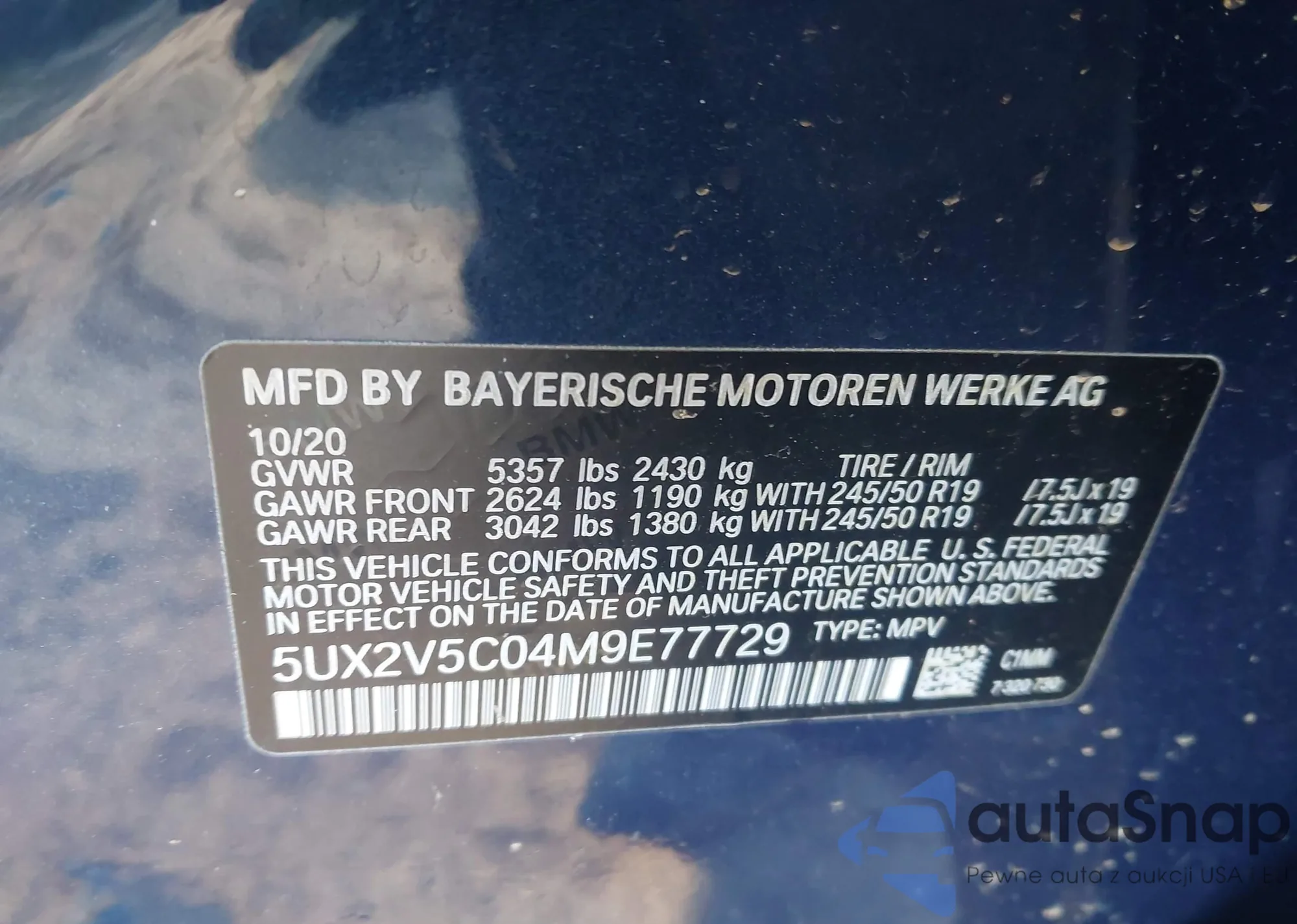 • VIN: 5UX2V5C04M9E77729