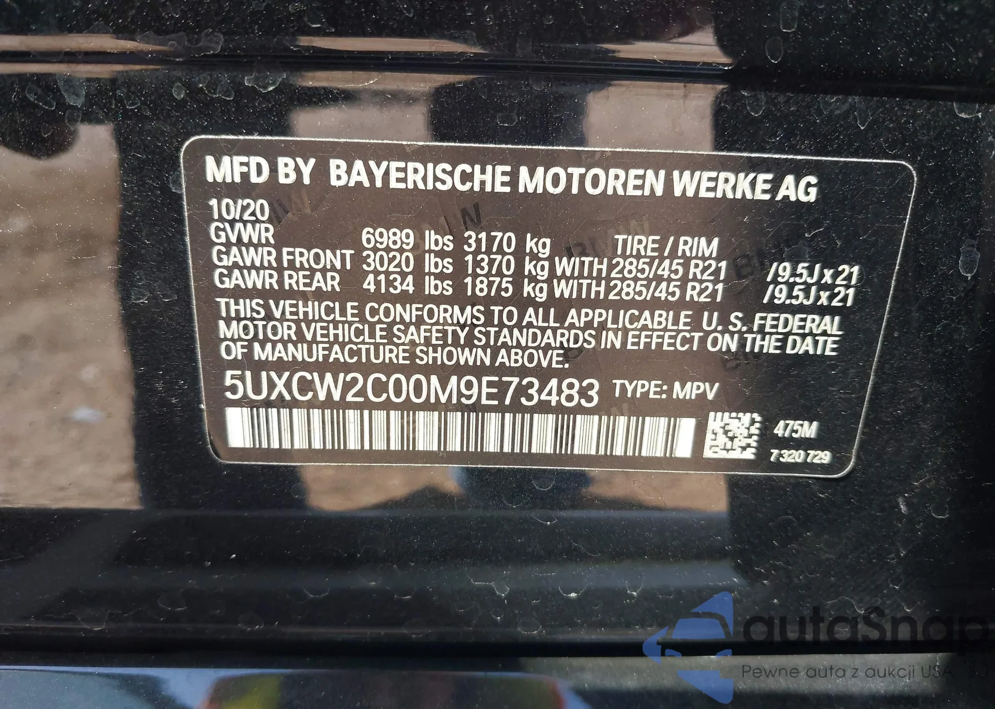 • VIN: 5UXCW2C00M9E73483