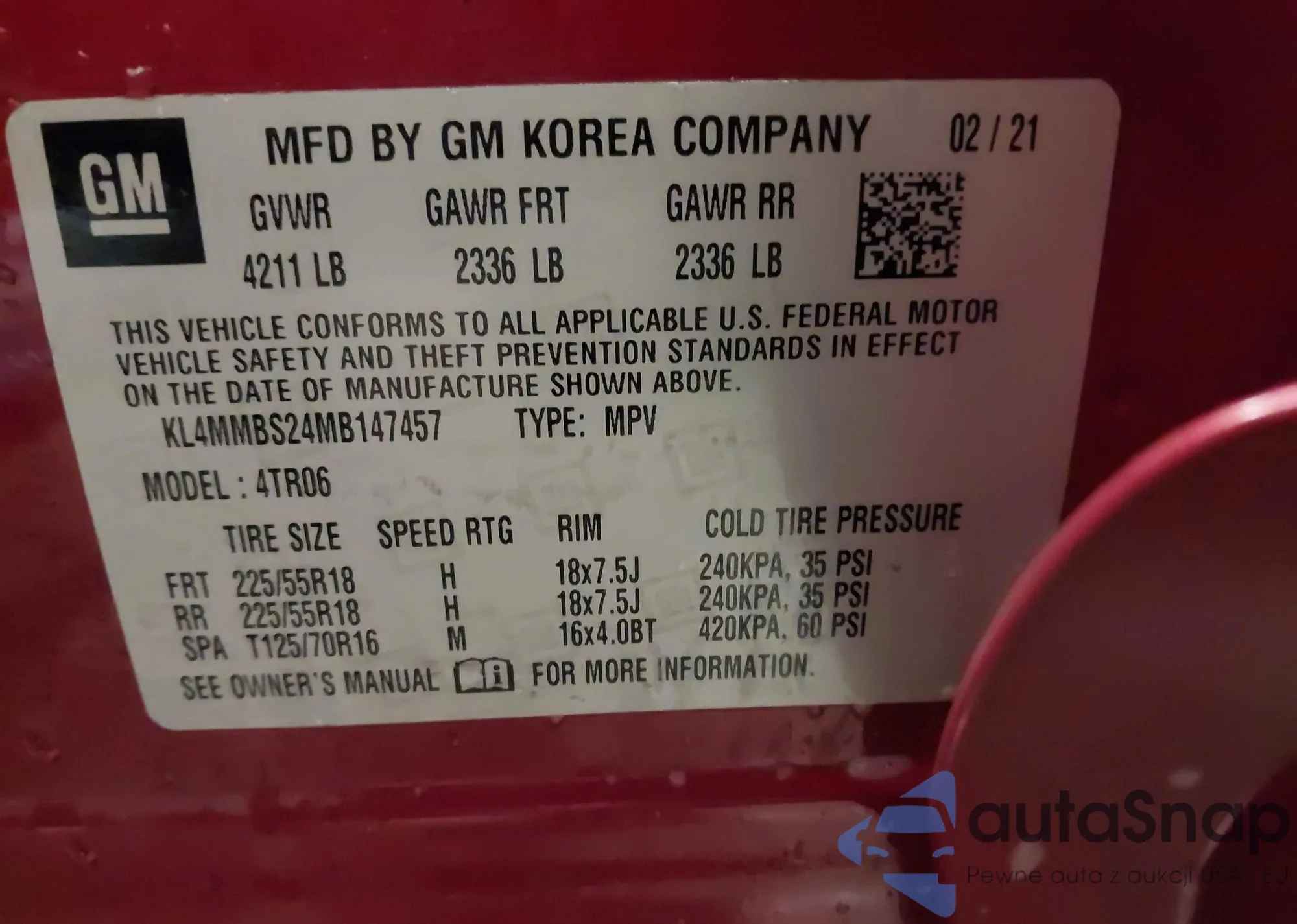 • VIN: KL4MMBS24MB147457