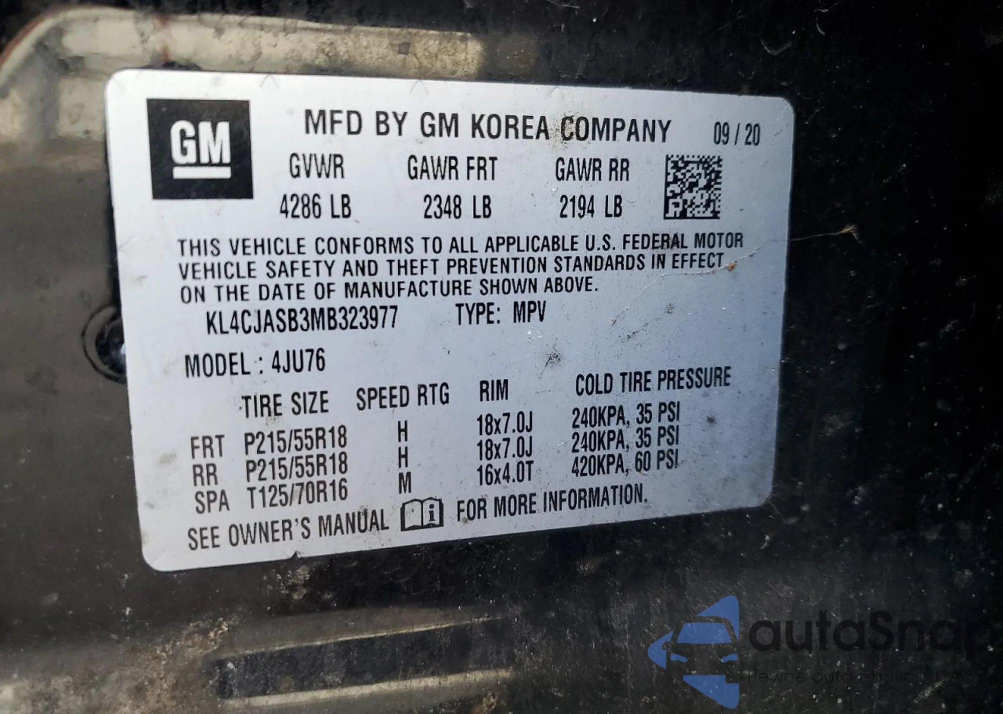 VIN: KL4CJASB3MB323977