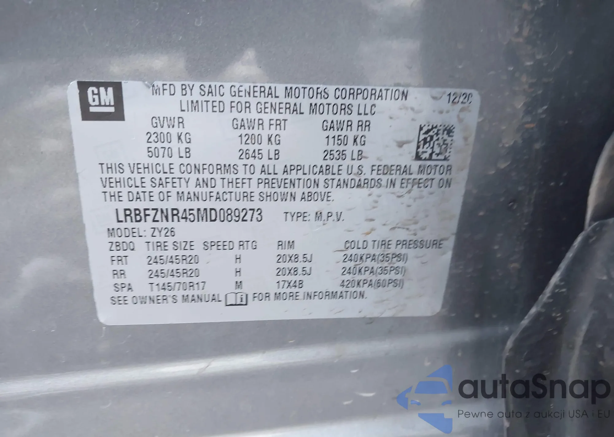 • VIN: LRBFZNR45MD089273