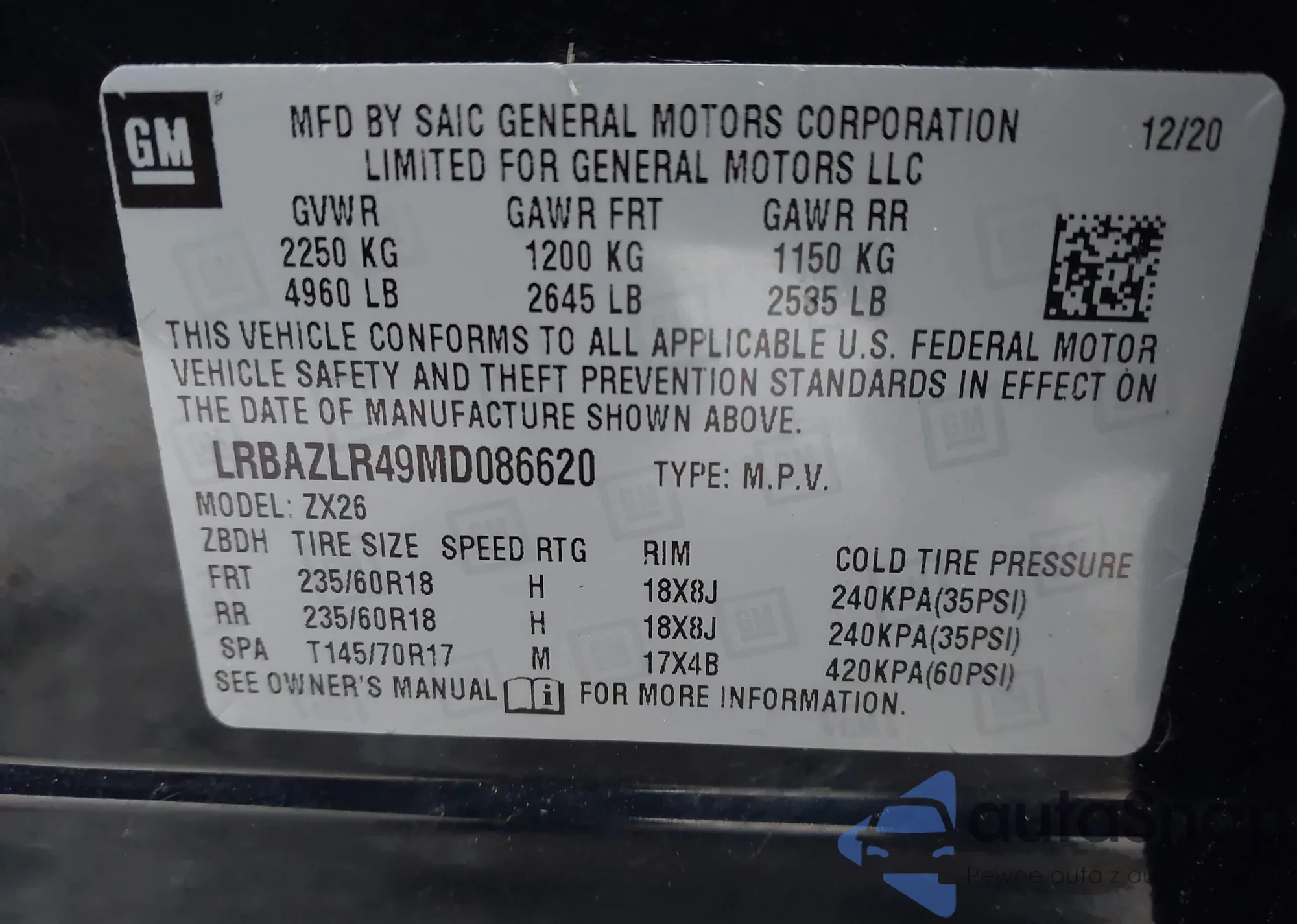 • VIN: LRBAZLR49MD086620