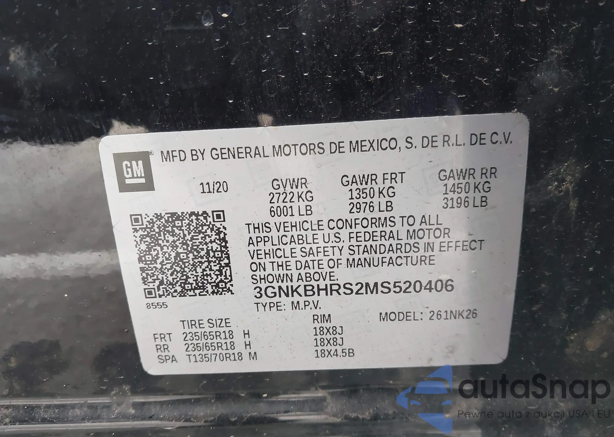 VIN: 3GNKBHRS2MS520406