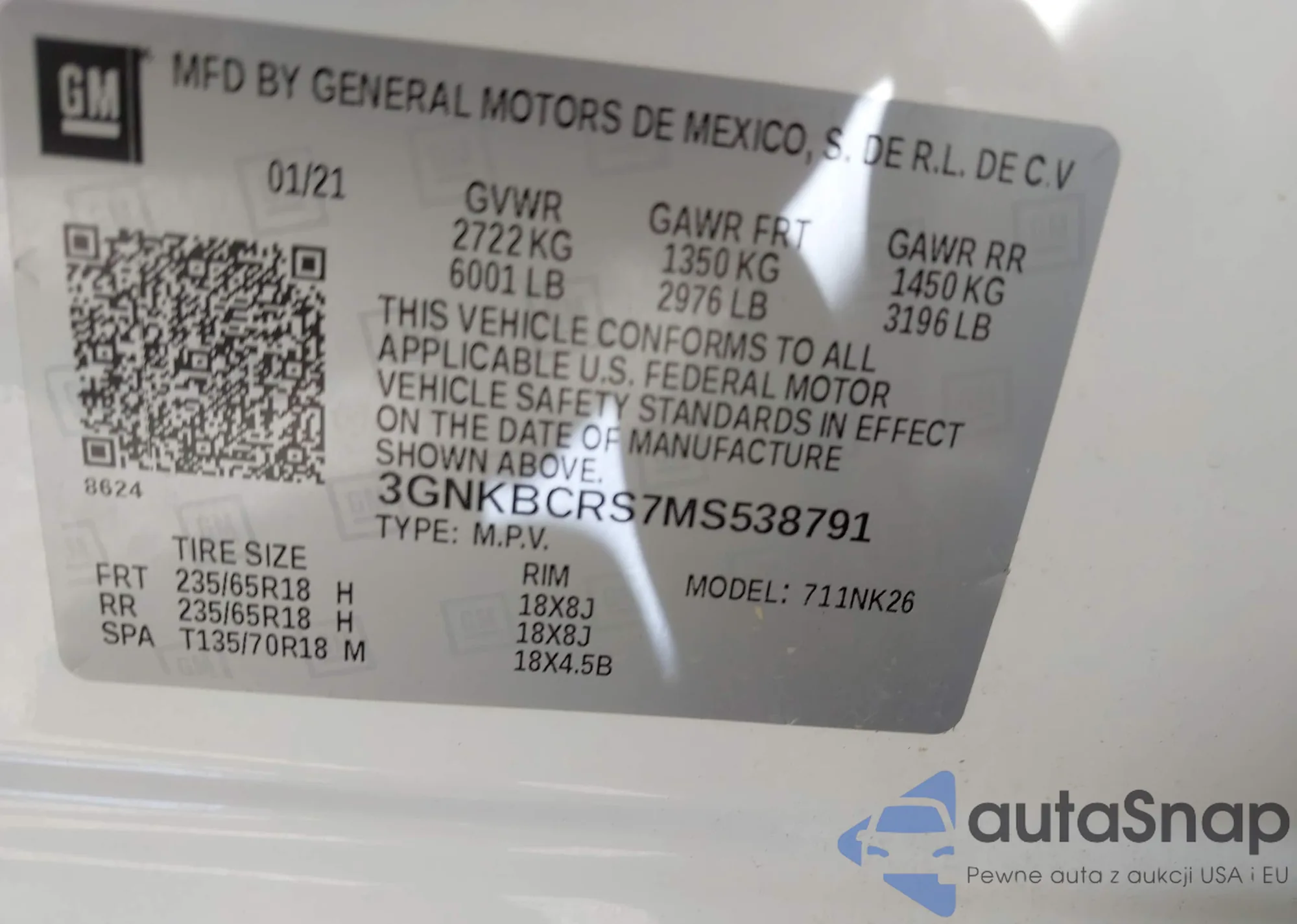 VIN: 3GNKBCRS7MS538791