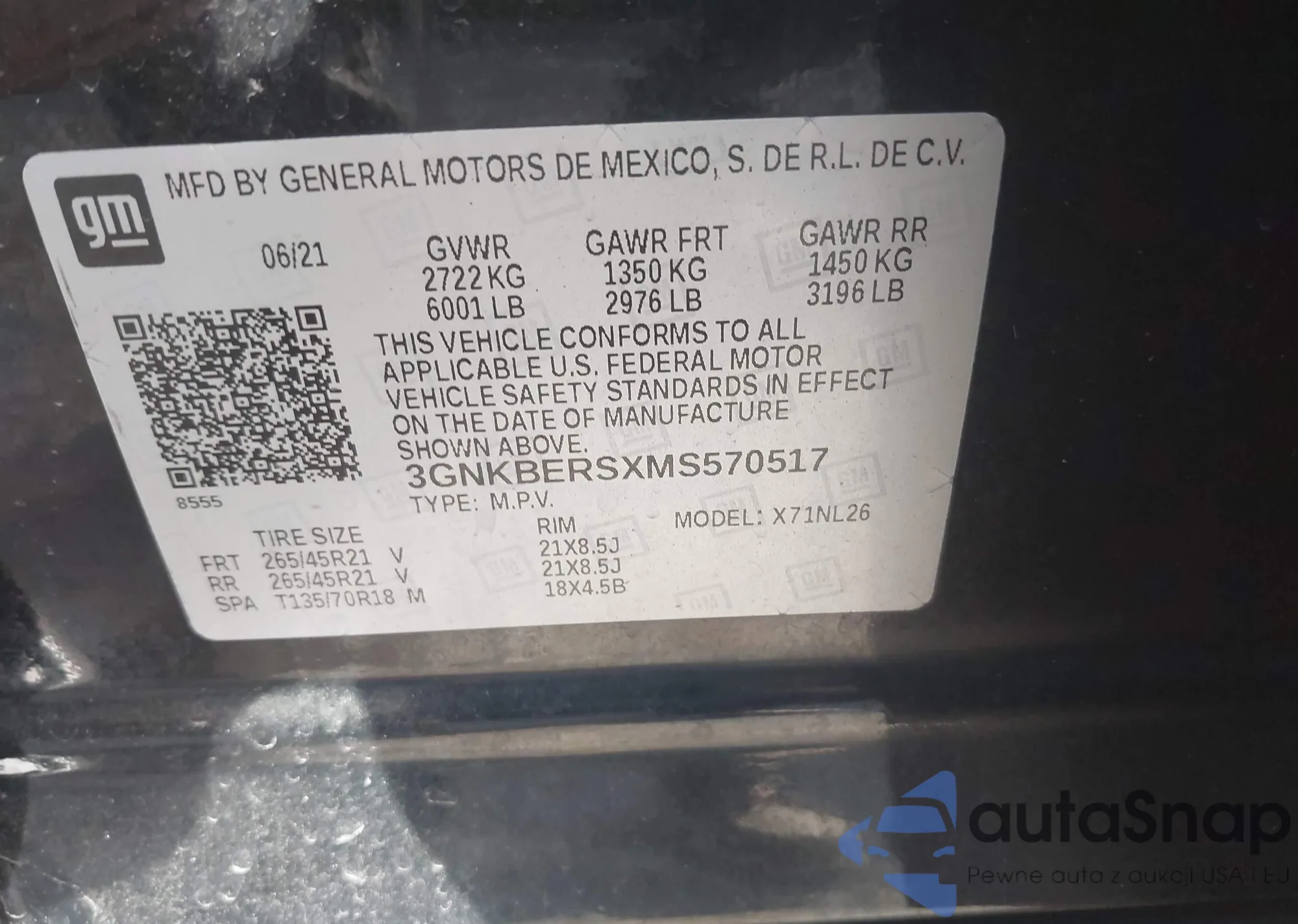 • VIN: 3GNKBERSXMS570517