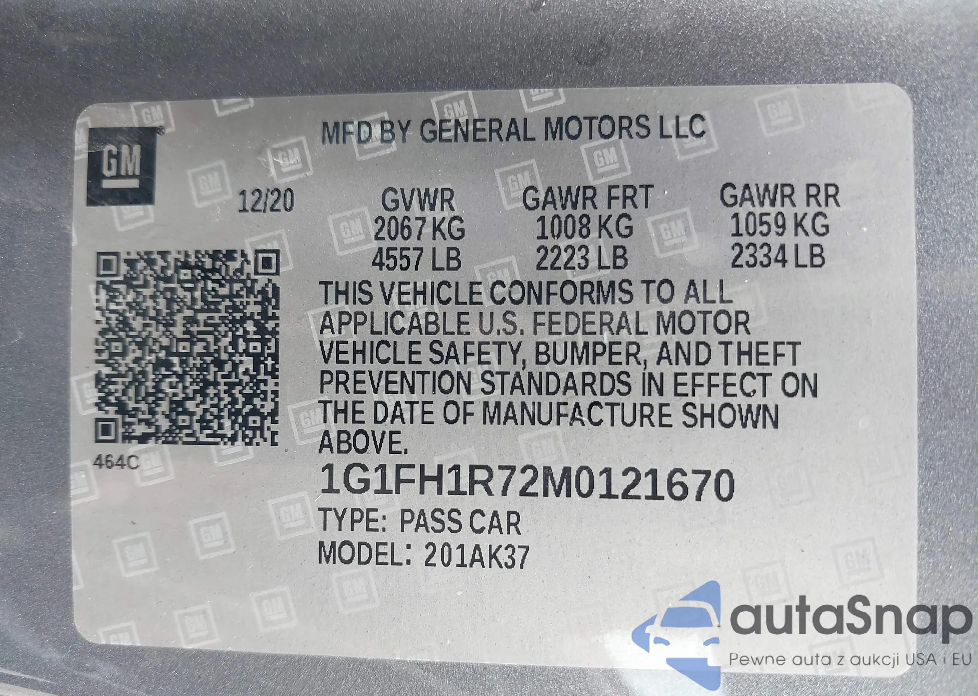 • VIN: 1G1FH1R72M0121670