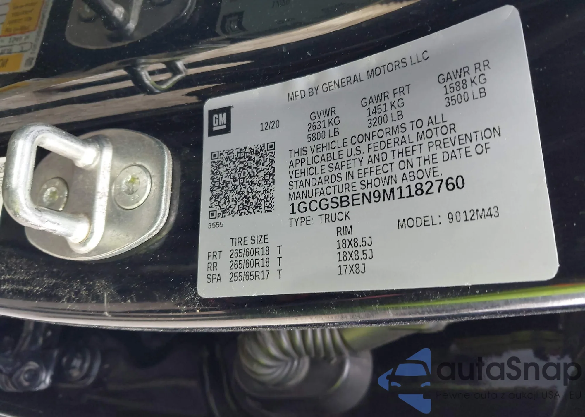 VIN: 1GCGSBEN9M1182760