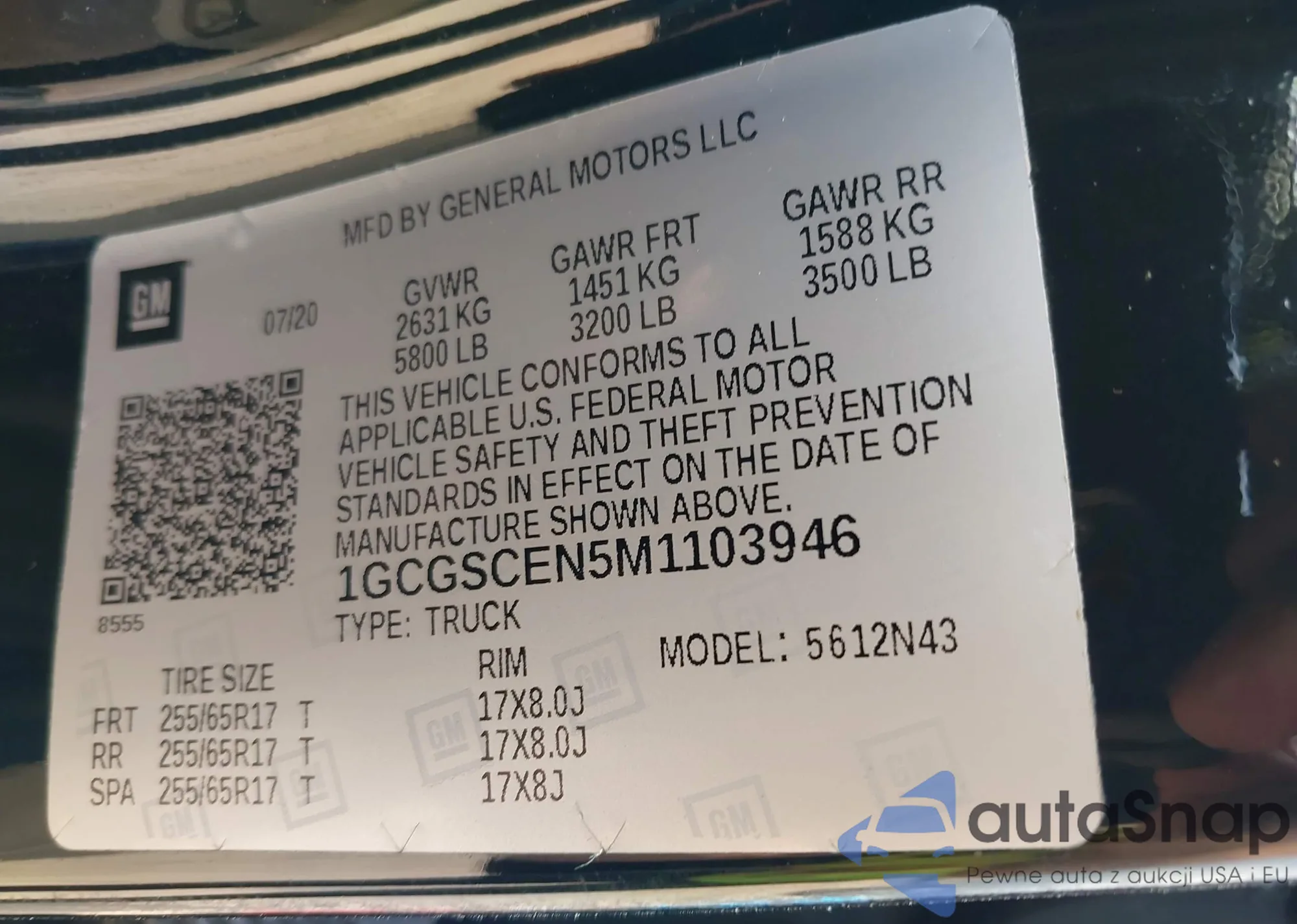 VIN: 1GCGSCEN5M1103946