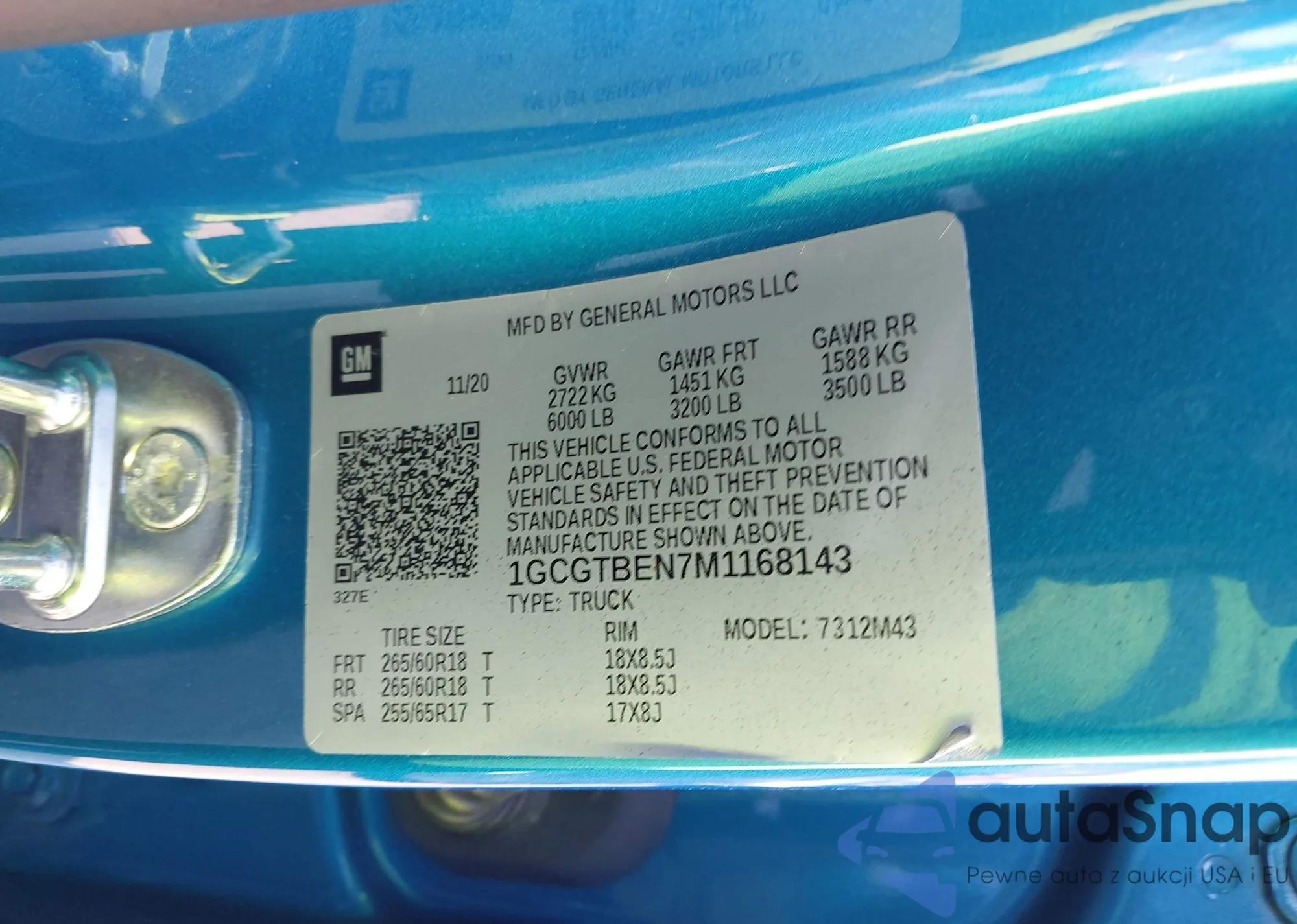 VIN: 1GCGTBEN7M1168143