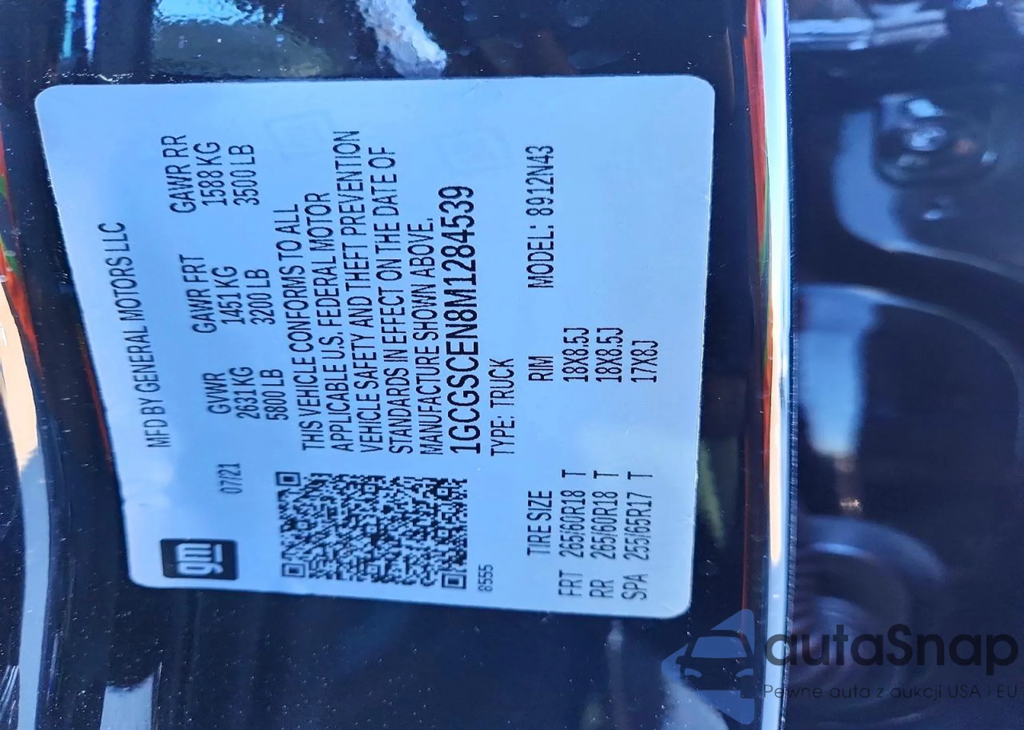The car Chevrolet Colorado 2021 (VIN 1GCGSCEN8M1284539) has not been auctioned before. The documents are clean, and the mileage matches or is below the market average. Sold by an insurance company – we recommend purchase. Delivery to the port will take approx. 6–8 weeks.