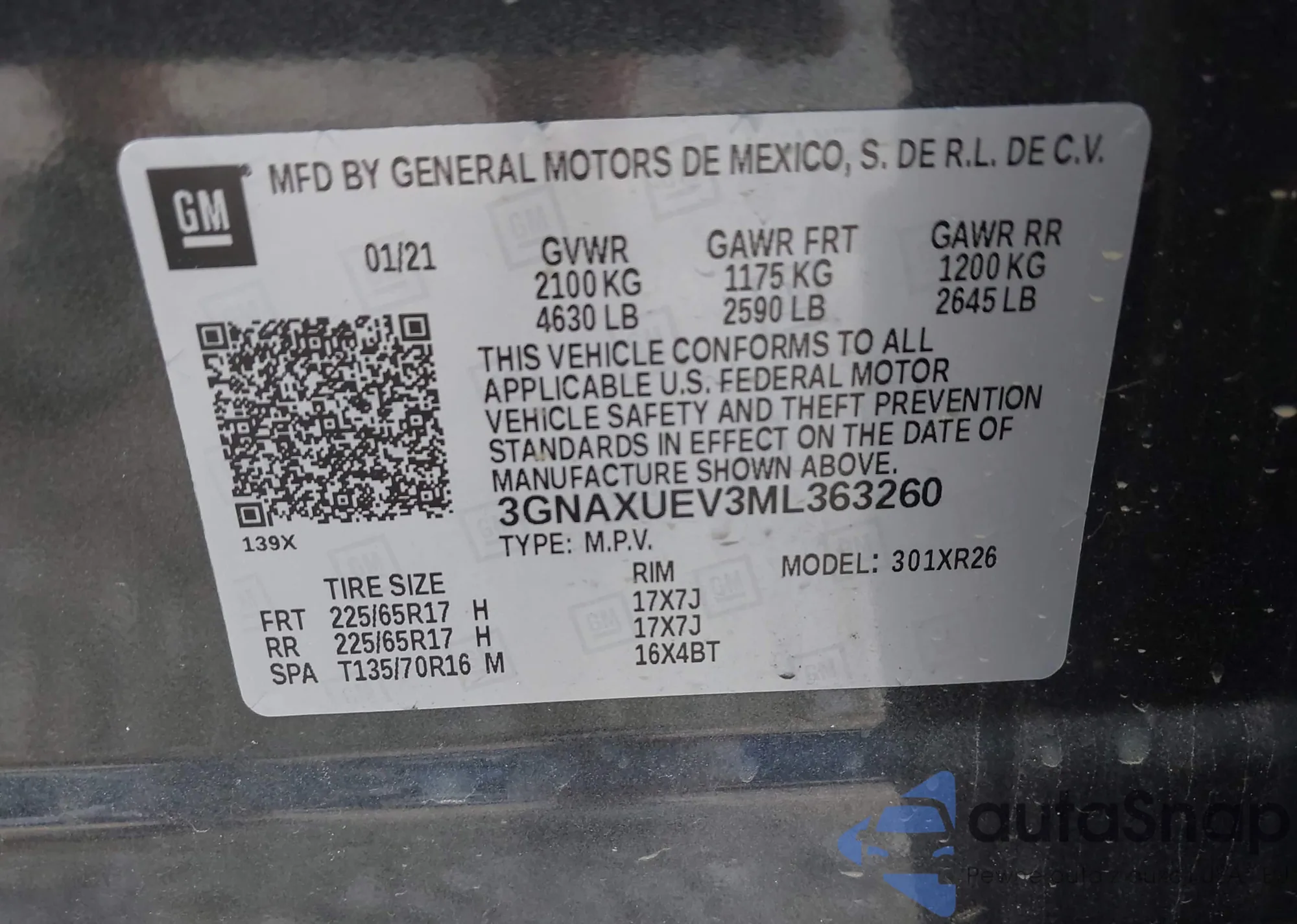 VIN: 3GNAXUEV3ML363260