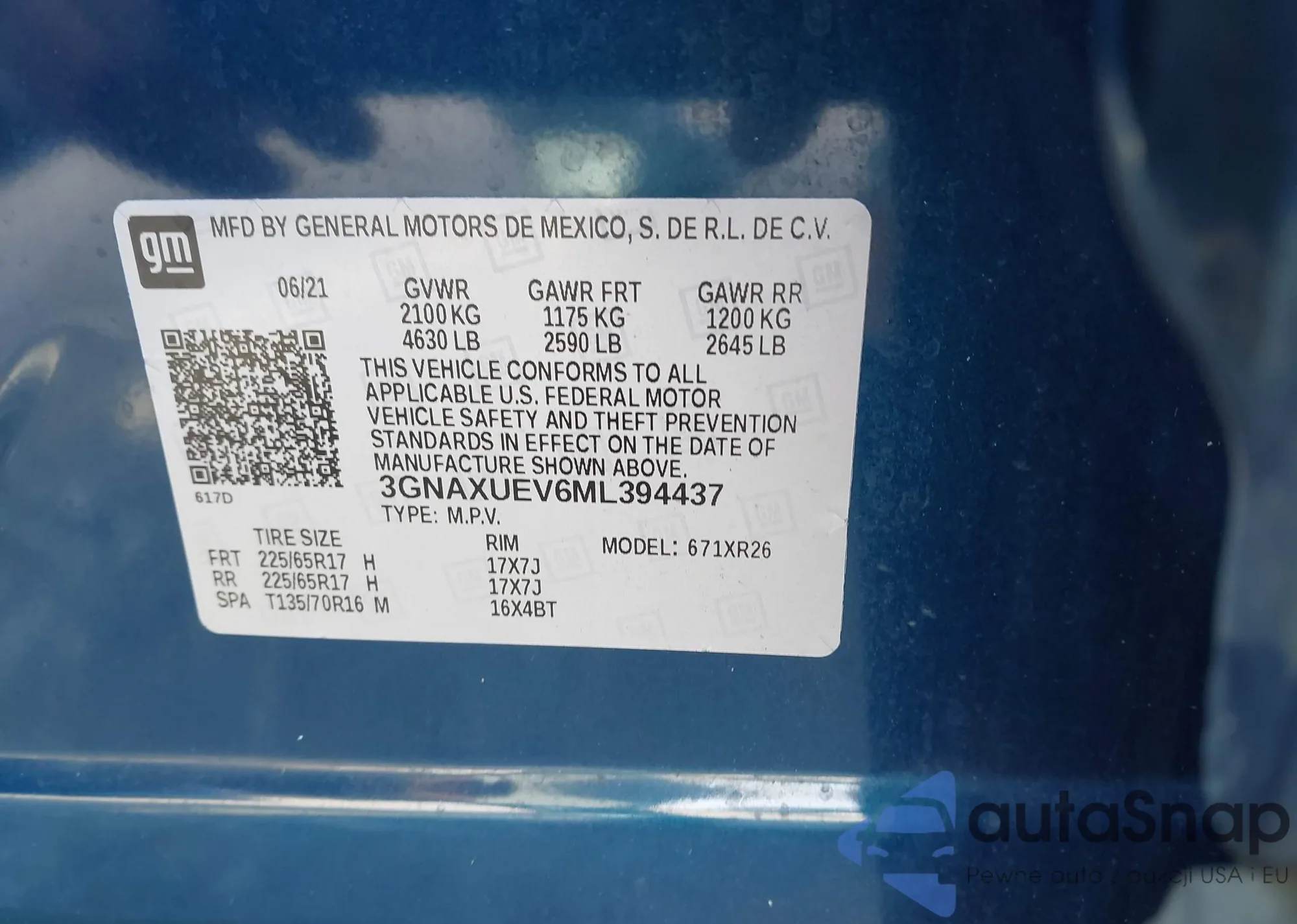 VIN: 3GNAXUEV6ML394437