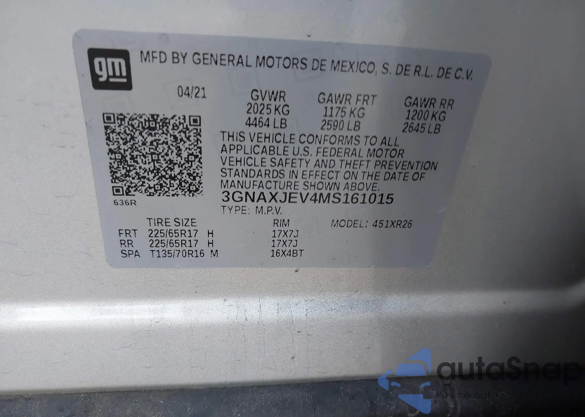 • VIN: 3GNAXJEV4MS161015
