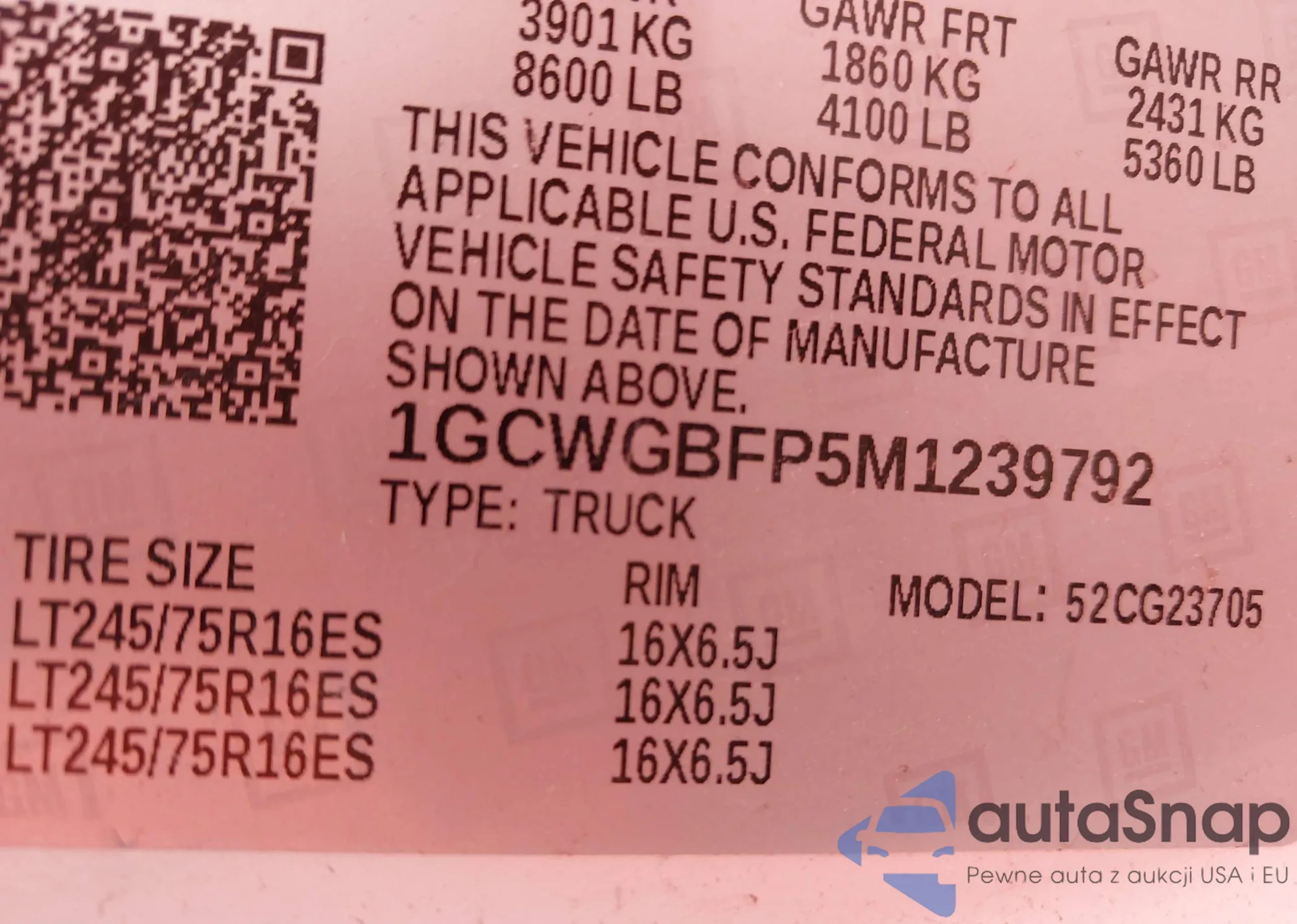 • VIN: 1GCWGBFP5M1239792