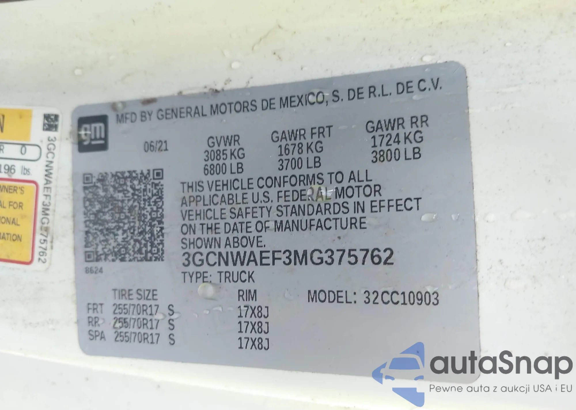 VIN: 3GCNWAEF3MG375762
