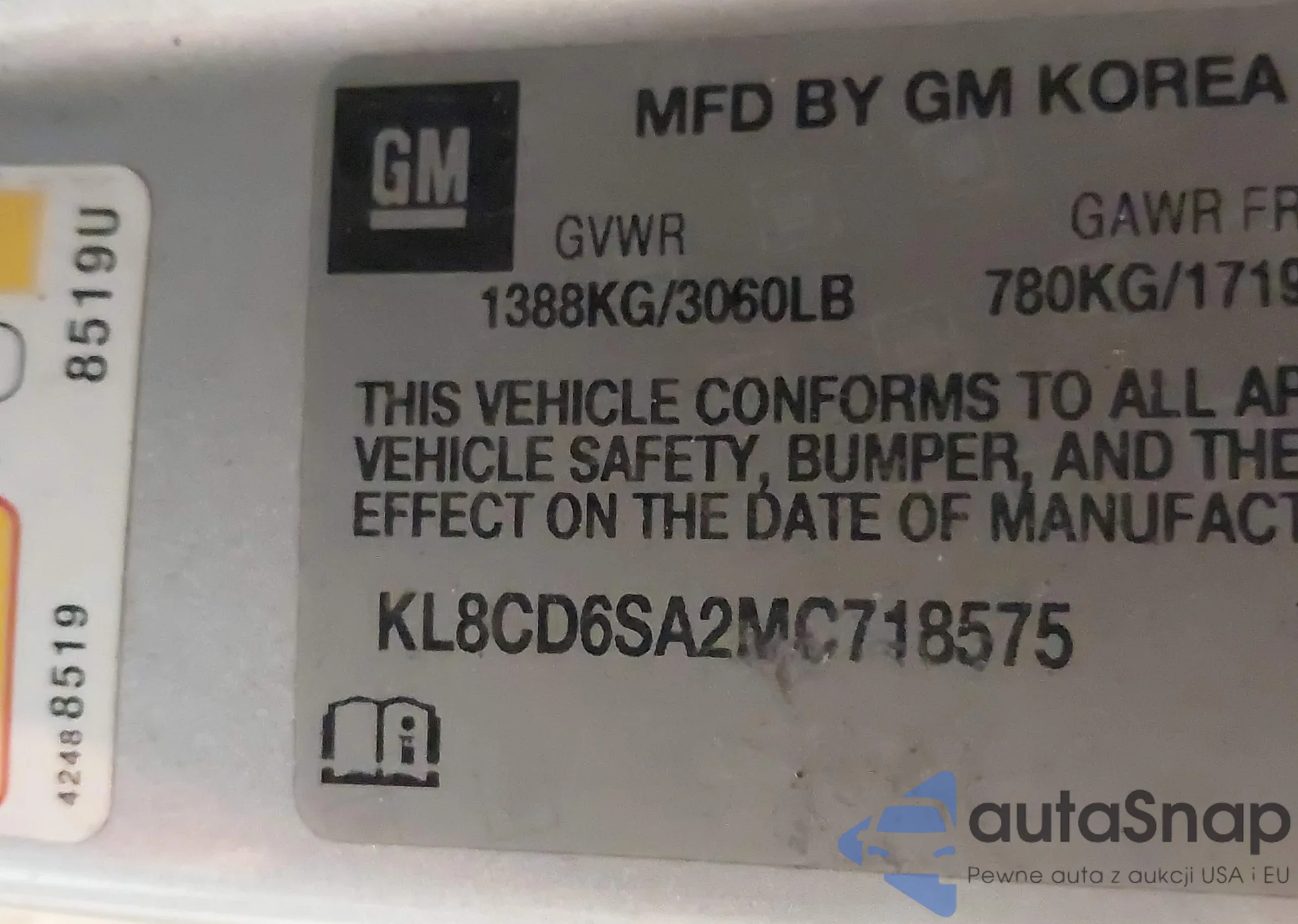 • VIN: KL8CD6SA2MC718575