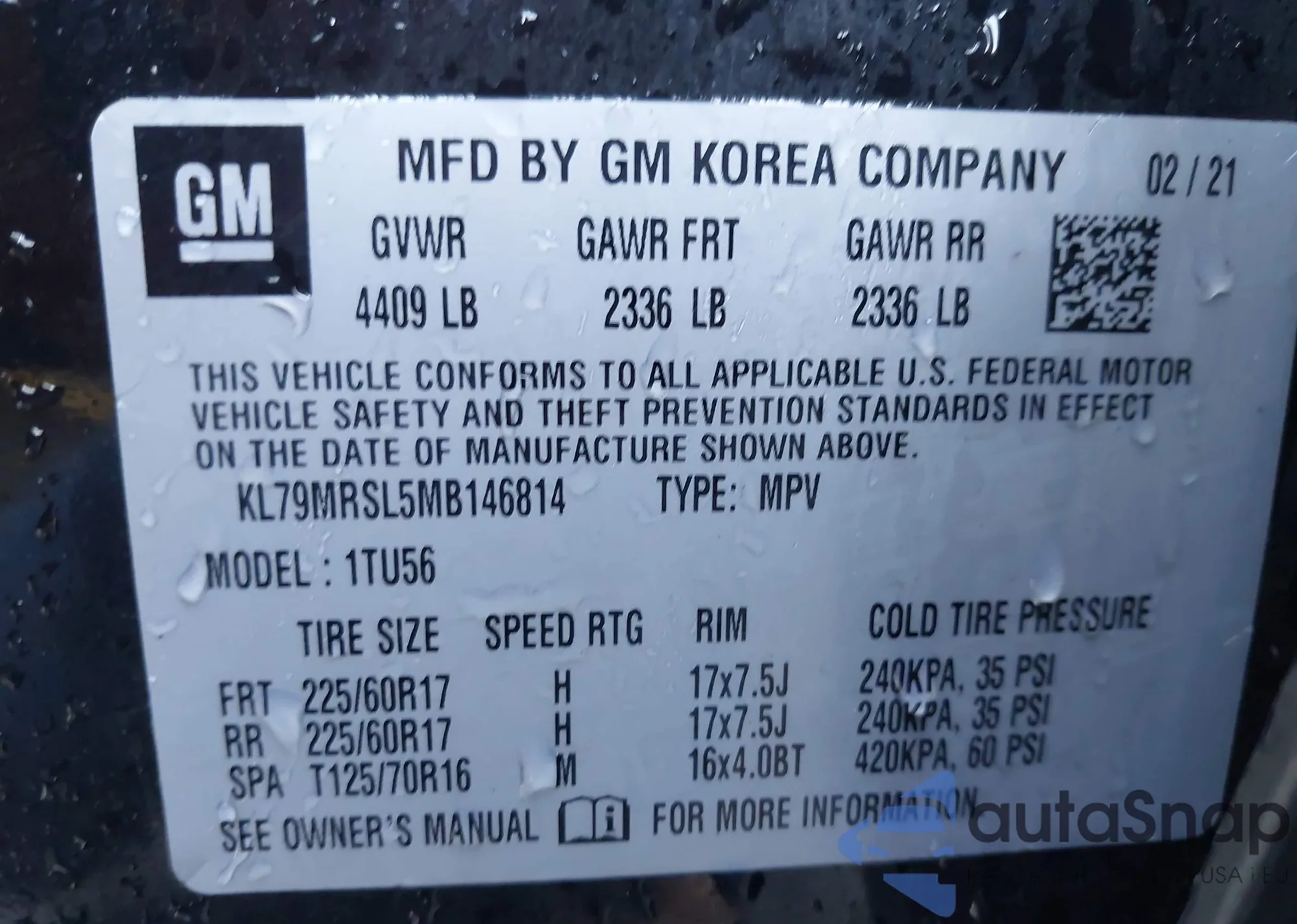 The car Chevrolet TrailBlazer 2021 (VIN KL79MRSL5MB146814) has not been auctioned before. The documents are clean, and the mileage matches or is below the market average. Sold by an insurance company – we recommend purchase. Delivery to the port will take approx. 6–8 weeks.