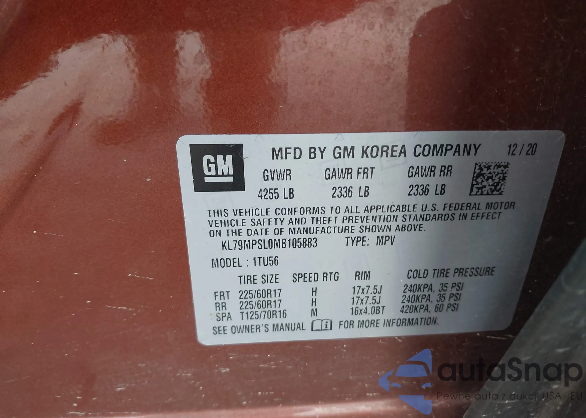 VIN: KL79MPSL0MB105883