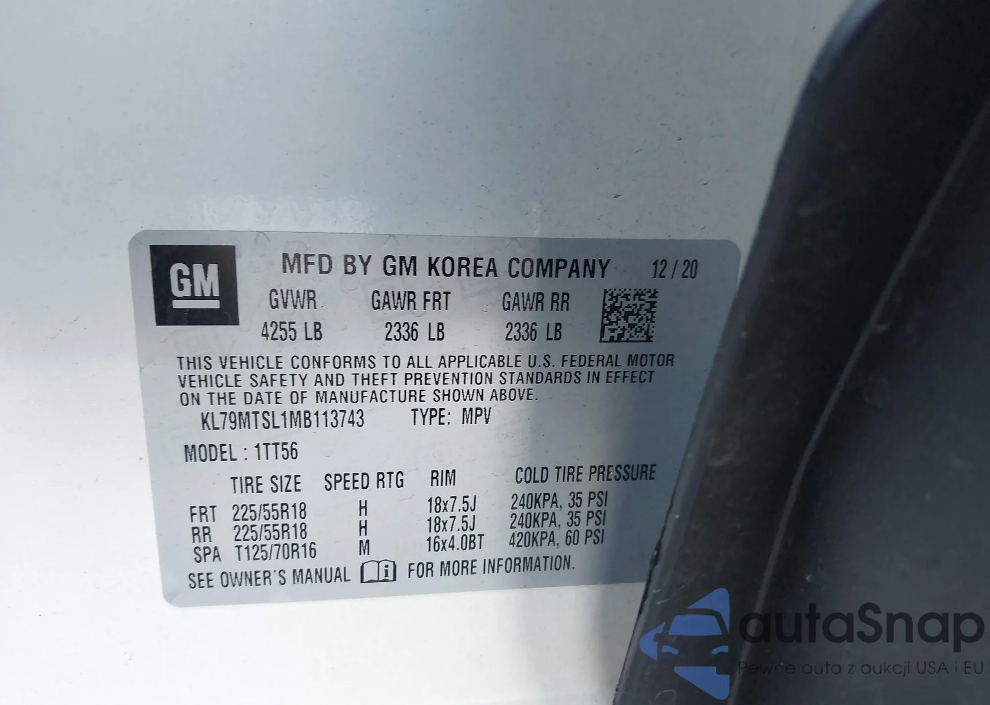 • VIN: KL79MTSL1MB113743