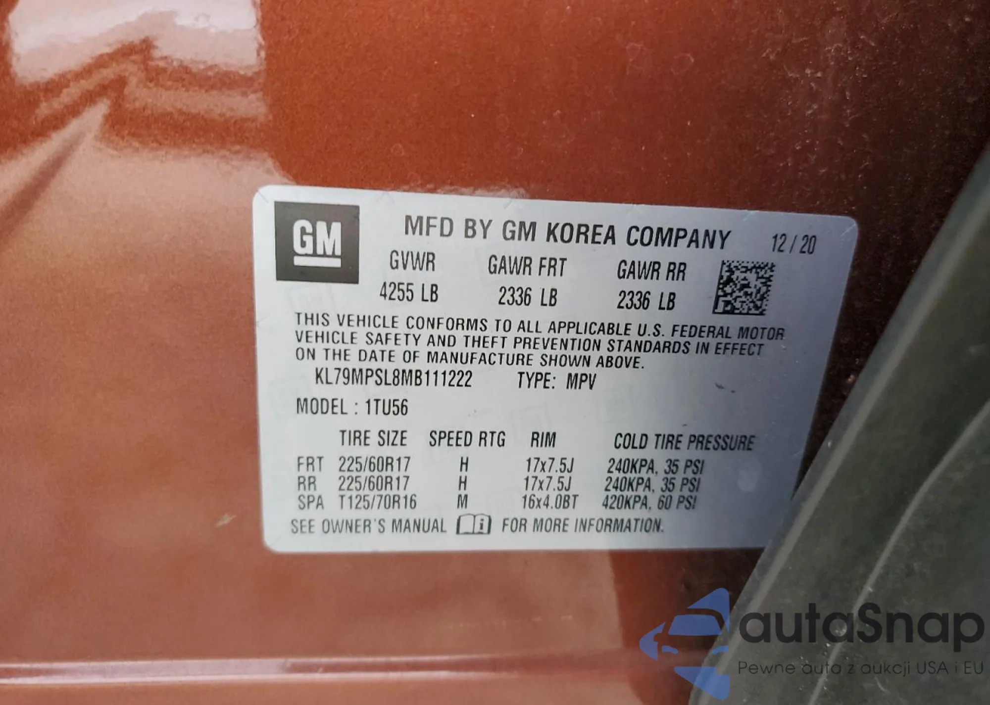 VIN: KL79MPSL8MB111222