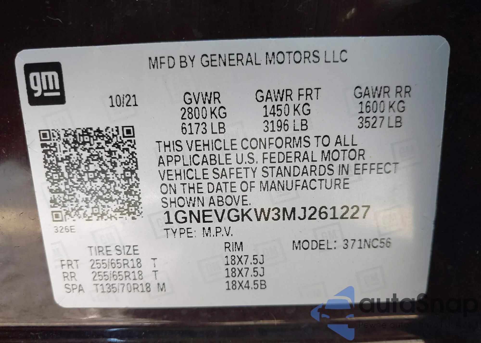 VIN: 1GNEVGKW3MJ261227