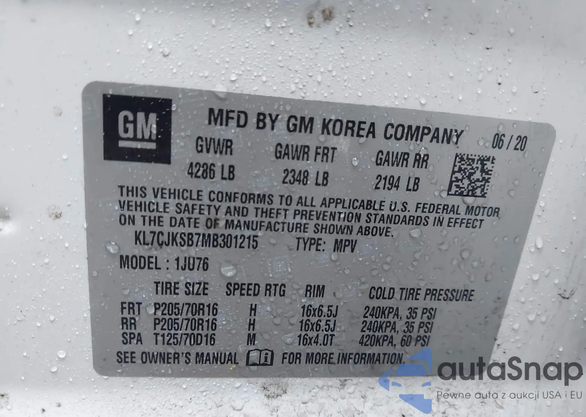 VIN: KL7CJKSB7MB301215