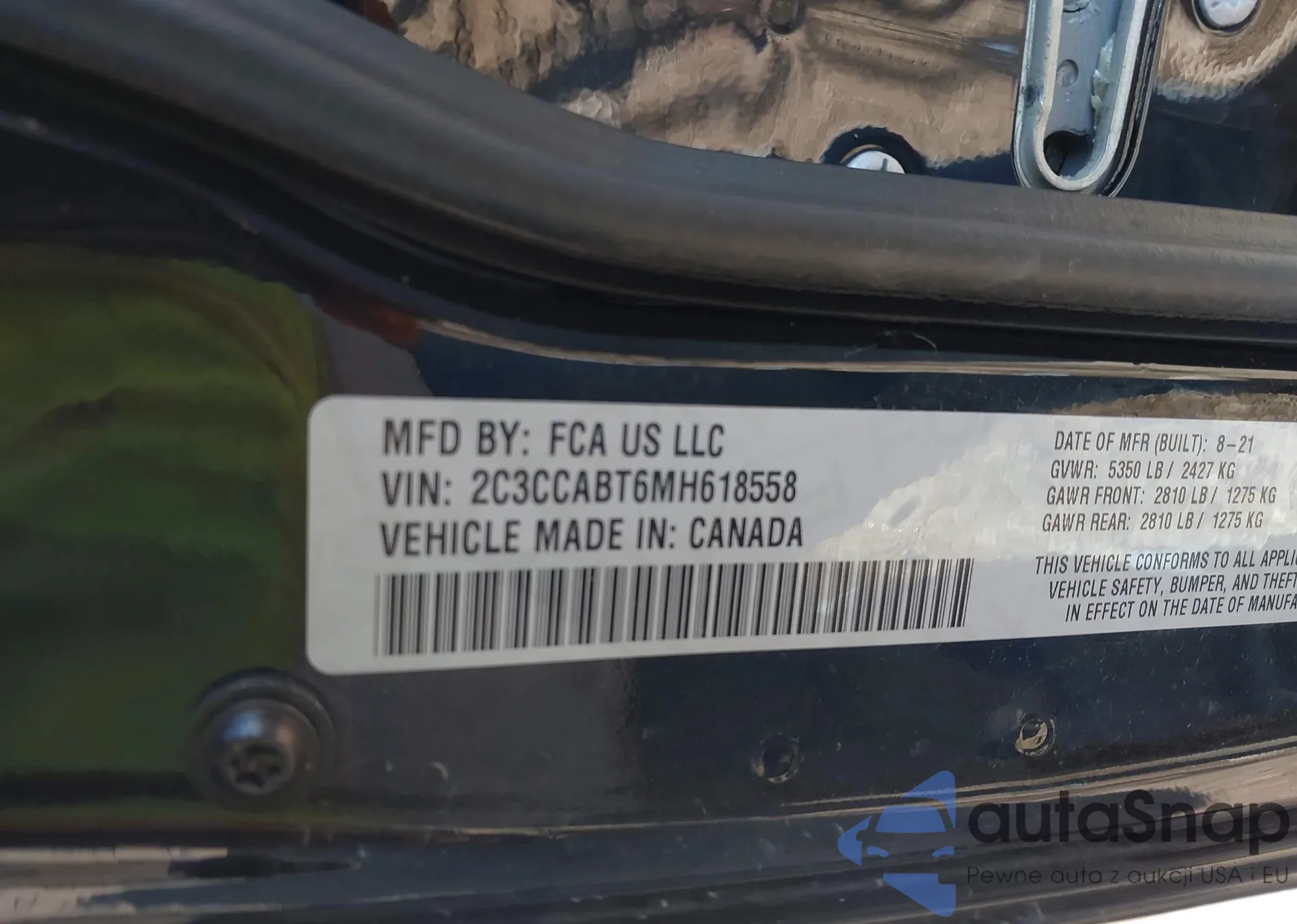 The car Chrysler 300 2021 (VIN 2C3CCABT6MH618558) has not been auctioned before. The documents are clean, and the mileage matches or is below the market average. Sold by an insurance company – we recommend purchase. Delivery to the port will take approx. 6–8 weeks.