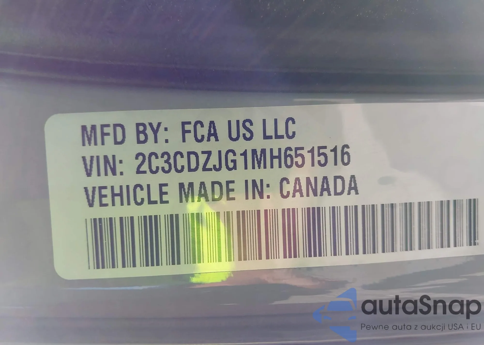 • VIN: 2C3CDZJG1MH651516