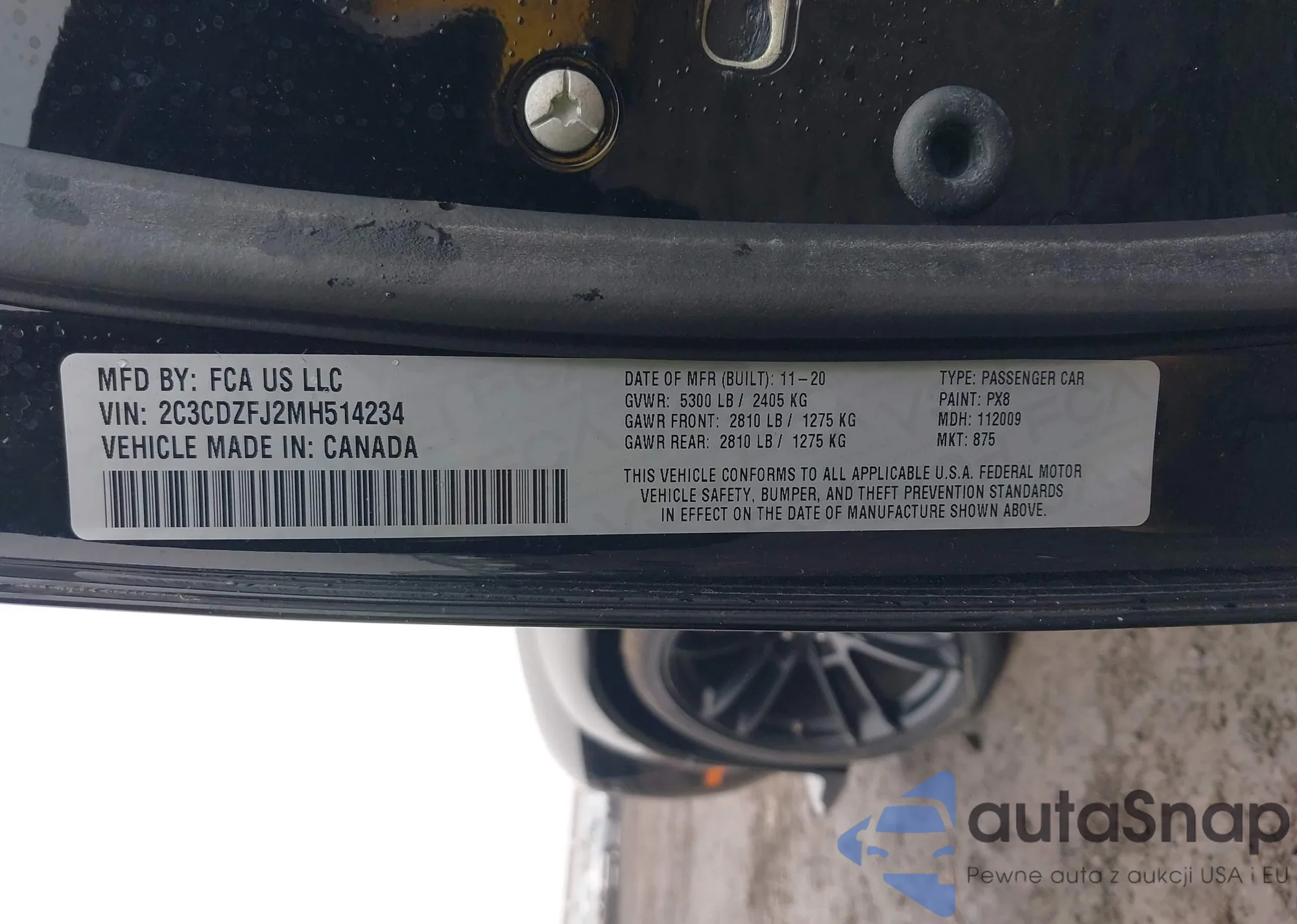 • VIN: 2C3CDZFJ2MH514234