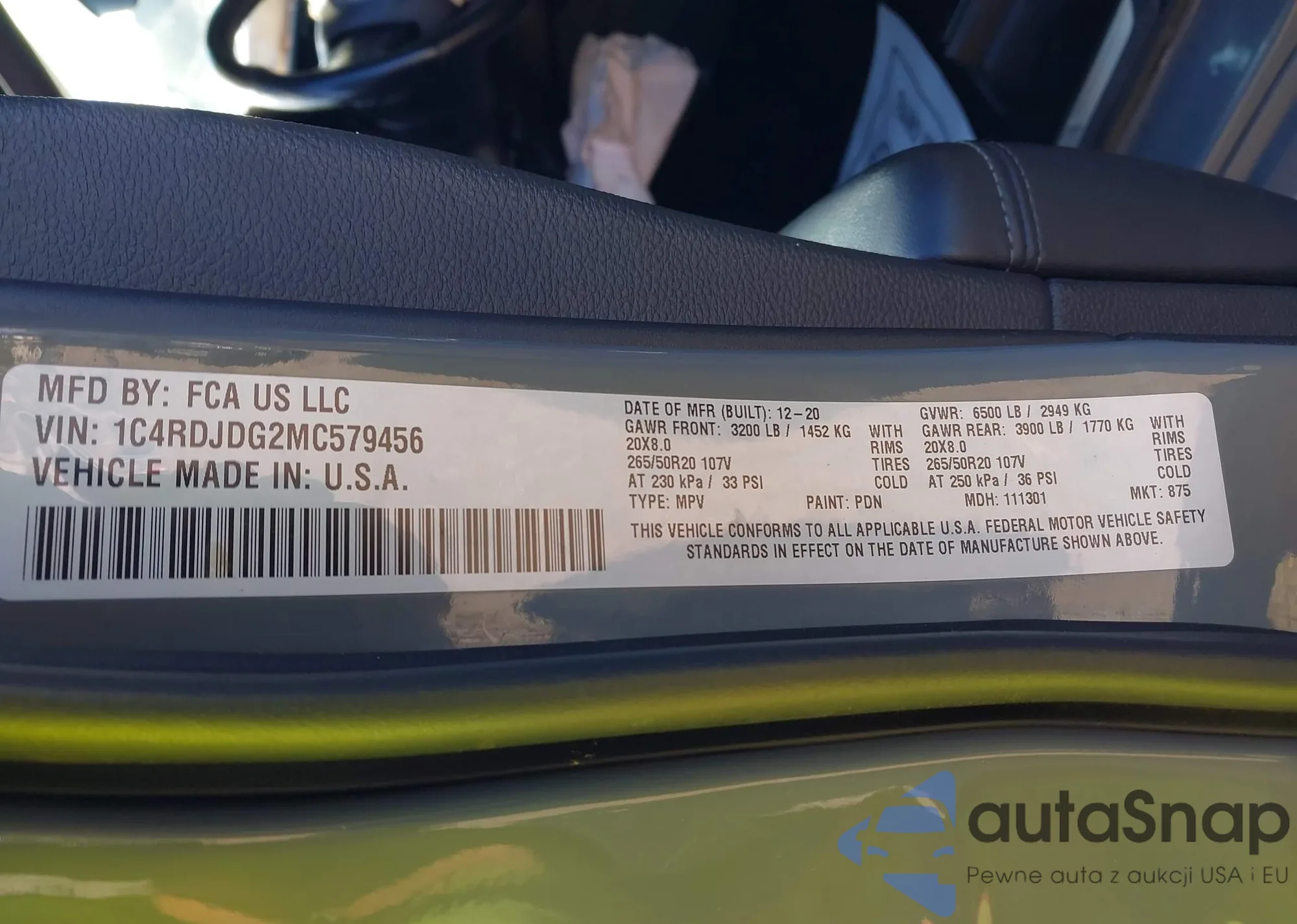VIN: 1C4RDJDG2MC579456