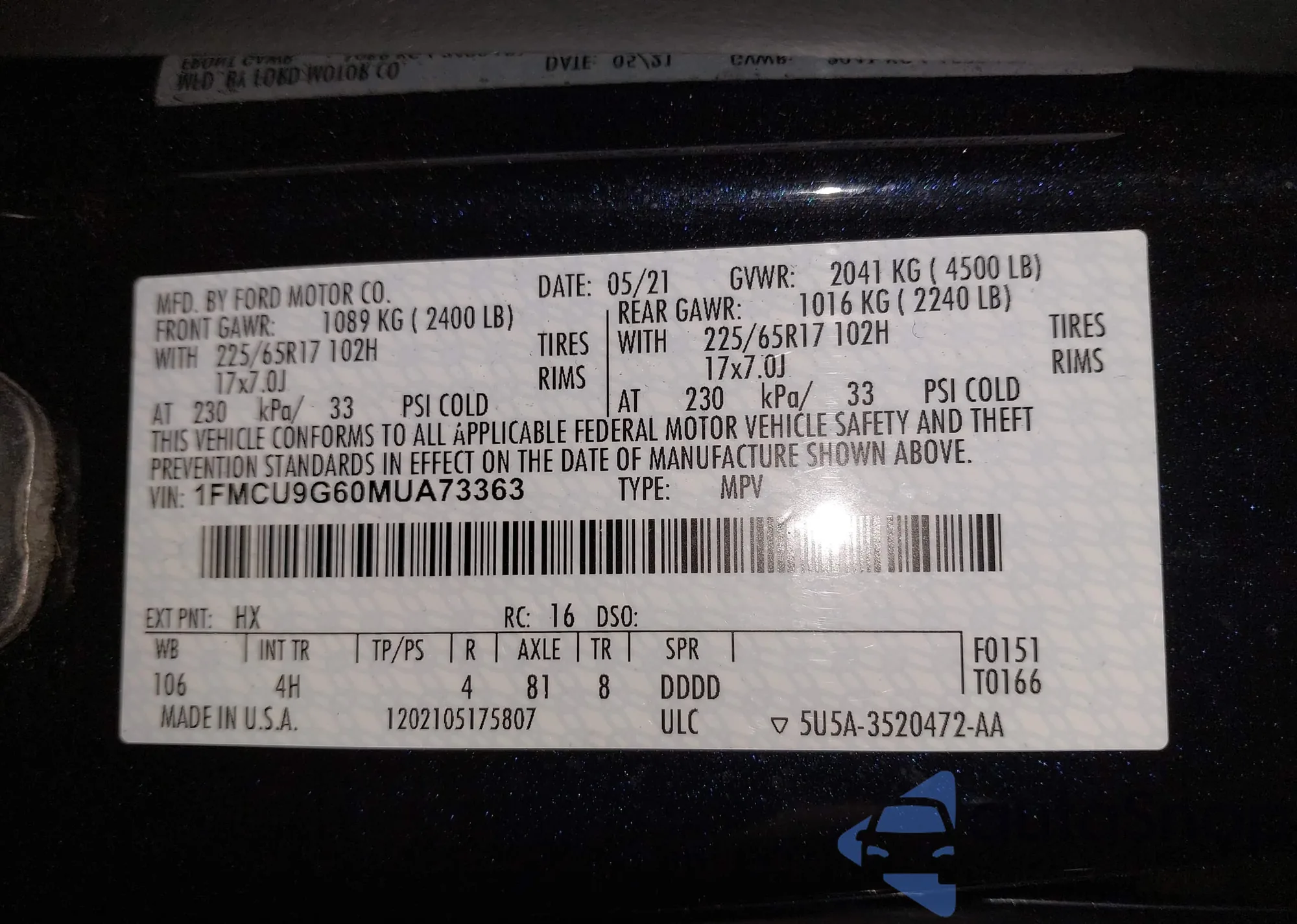 VIN: 1FMCU9G60MUA73363