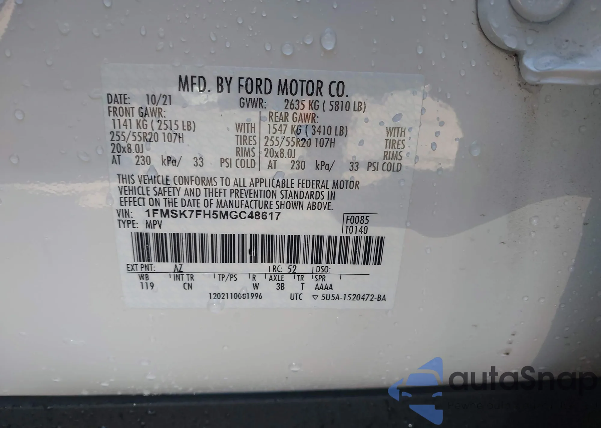 VIN: 1FMSK7FH5MGC48617
