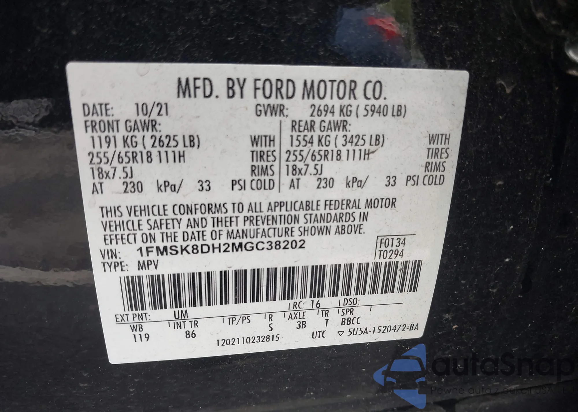 VIN: 1FMSK8DH2MGC38202