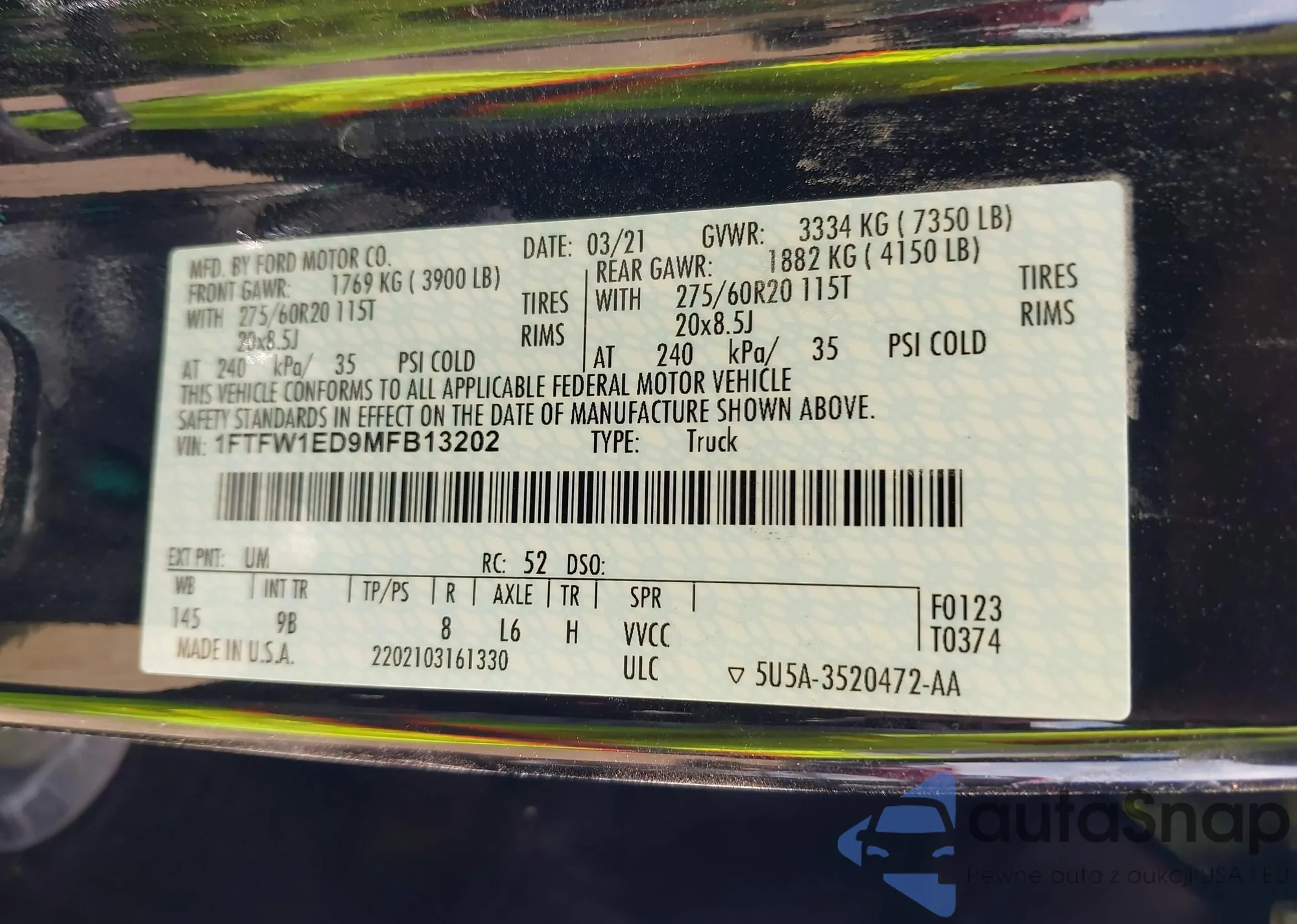 VIN: 1FTFW1ED9MFB13202