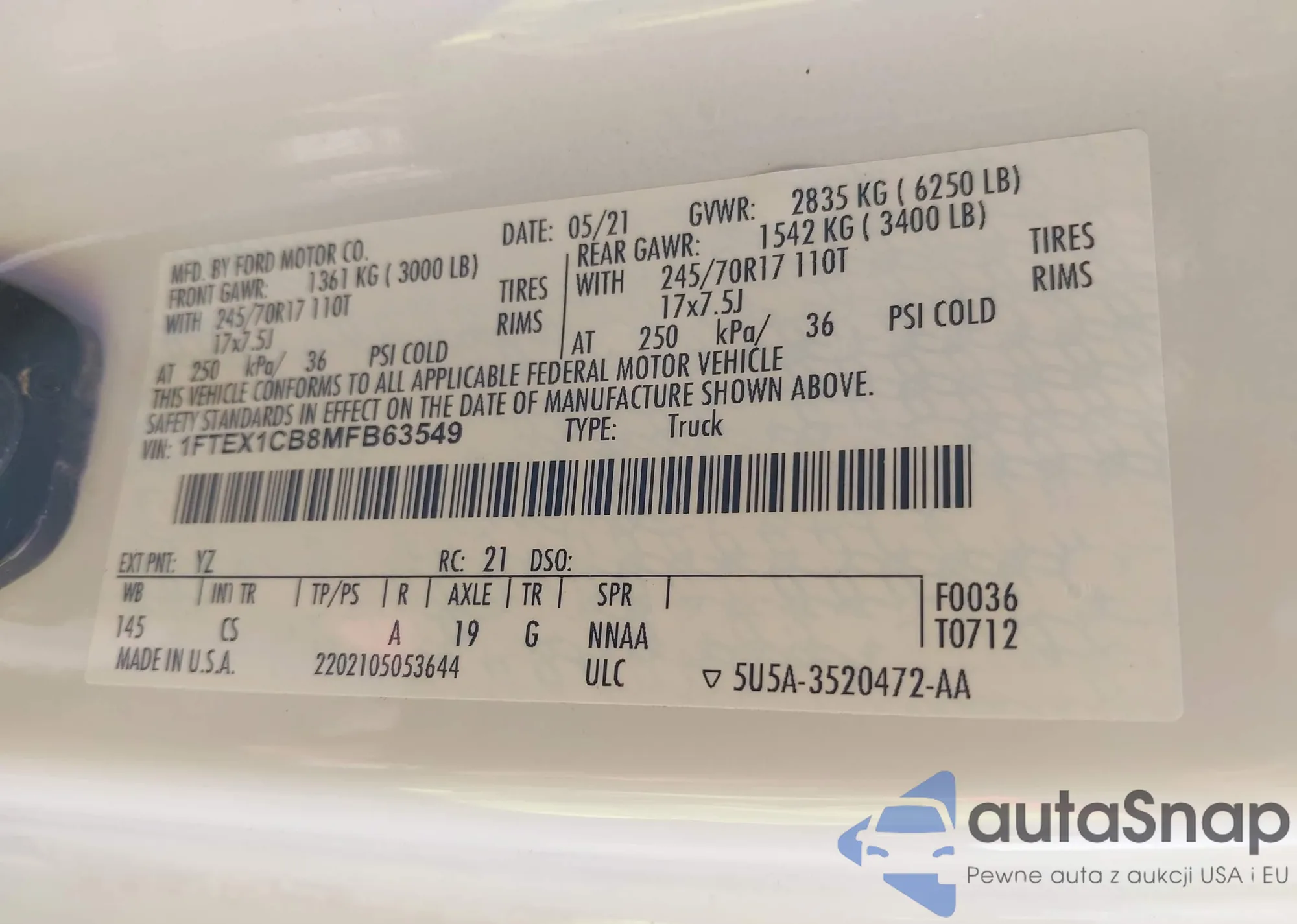 VIN: 1FTEX1CB8MFB63549