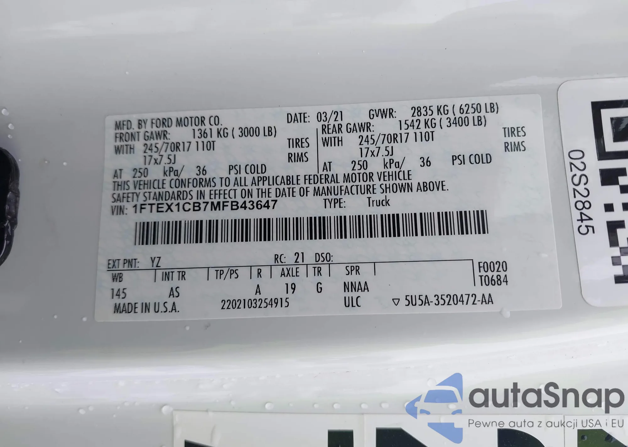 VIN: 1FTEX1CB7MFB43647