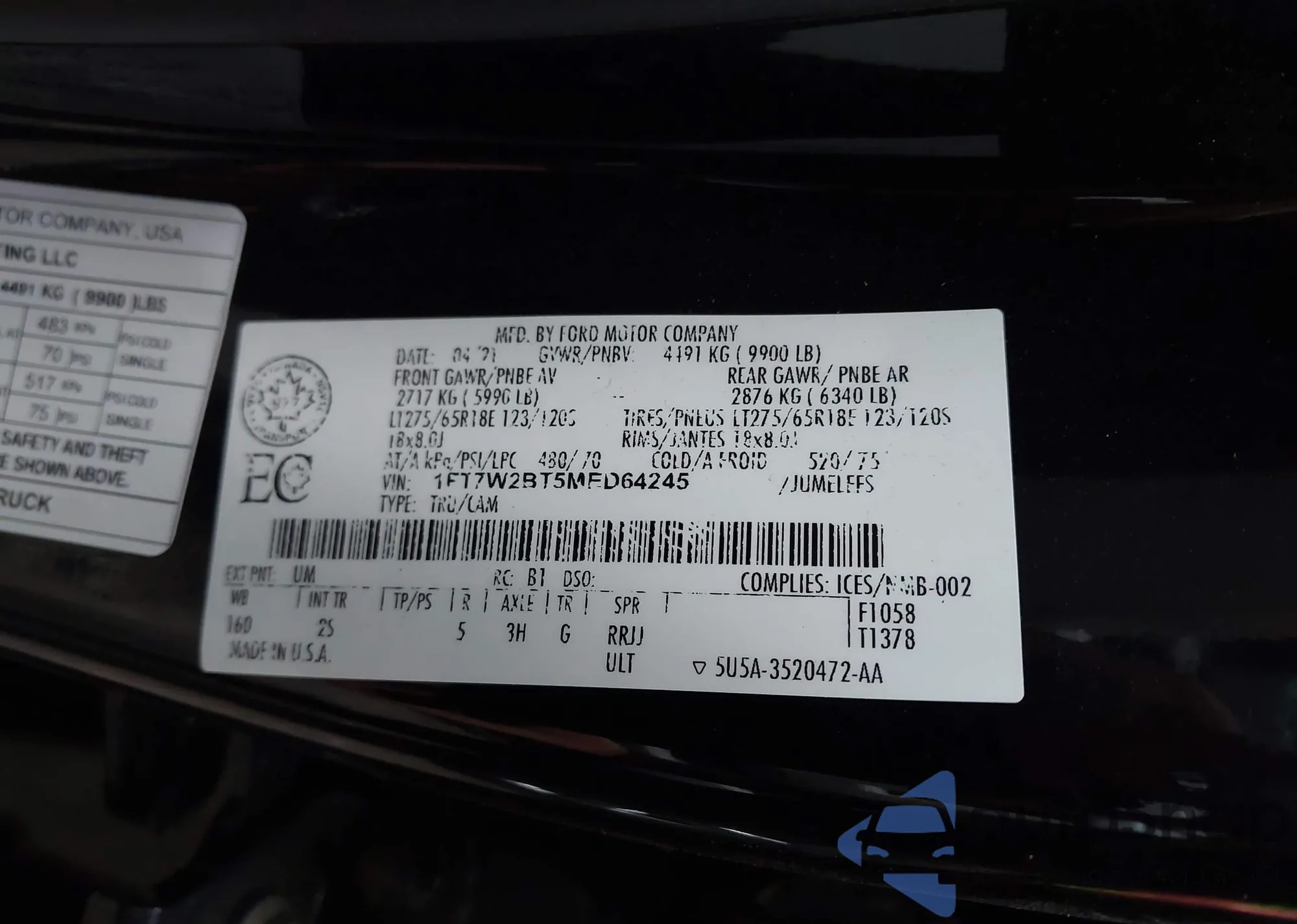 VIN: 1FT7W2BT5MED64245
