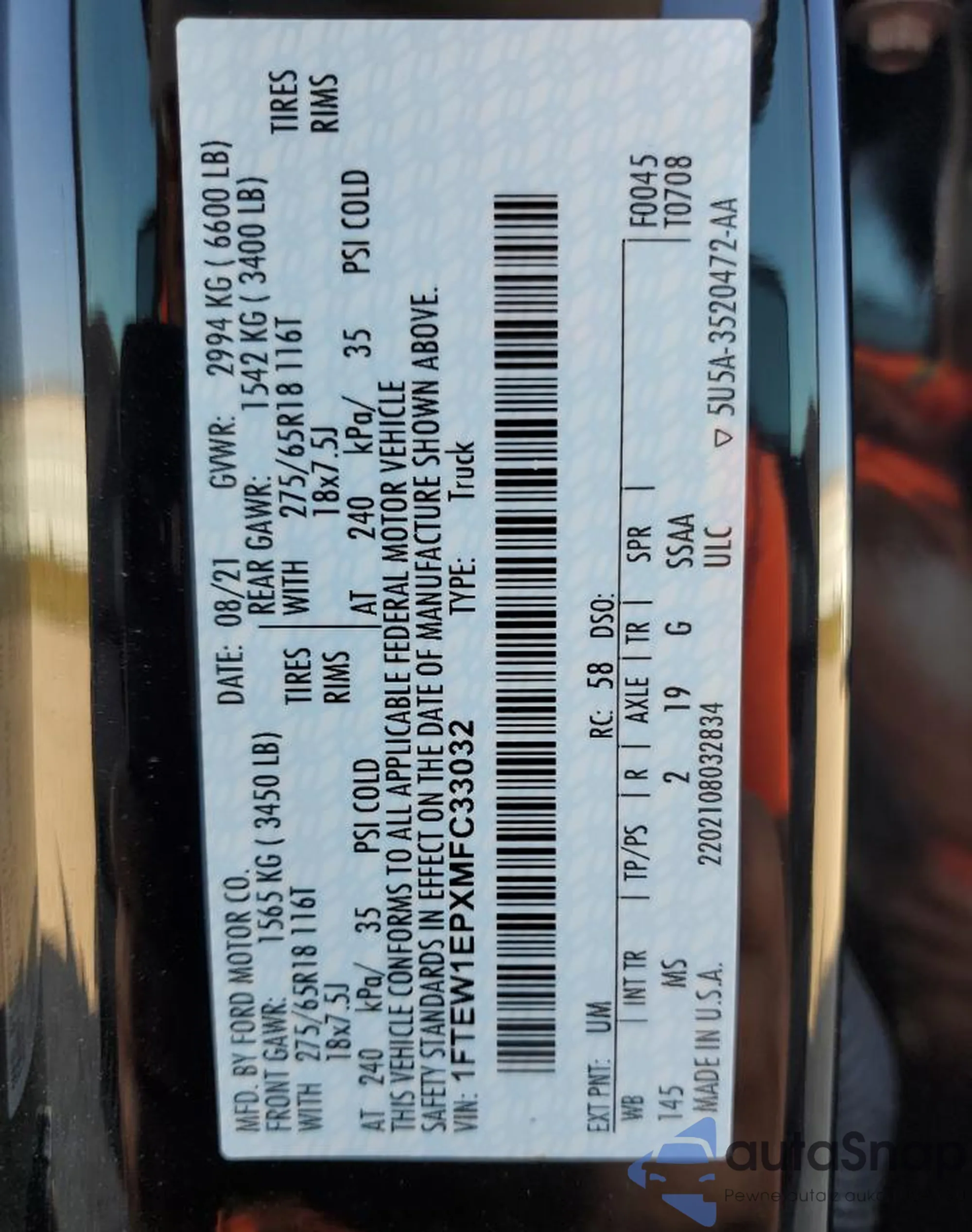 VIN: 1FTEW1EPXMFC33032