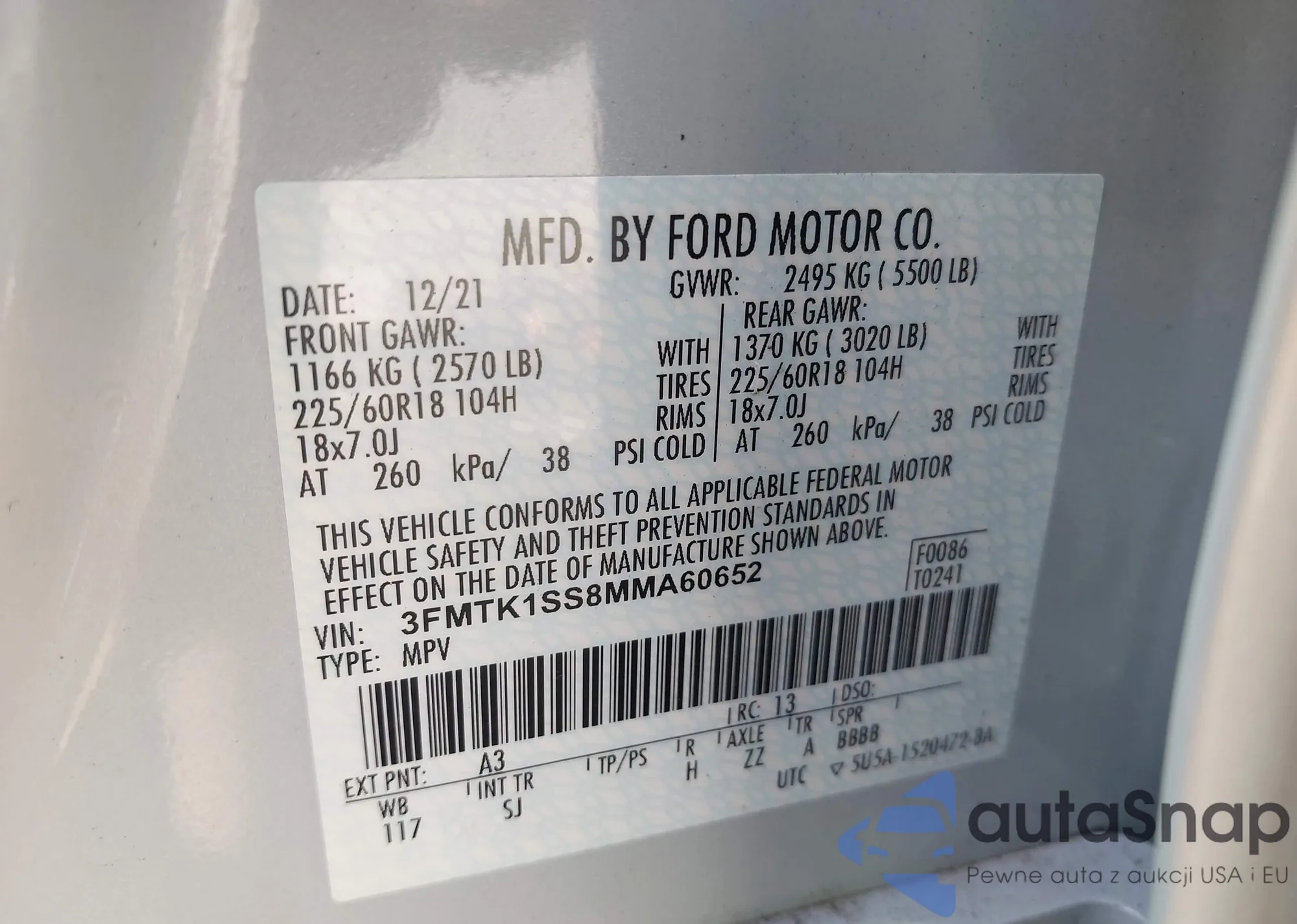 VIN: 3FMTK1SS8MMA60652
