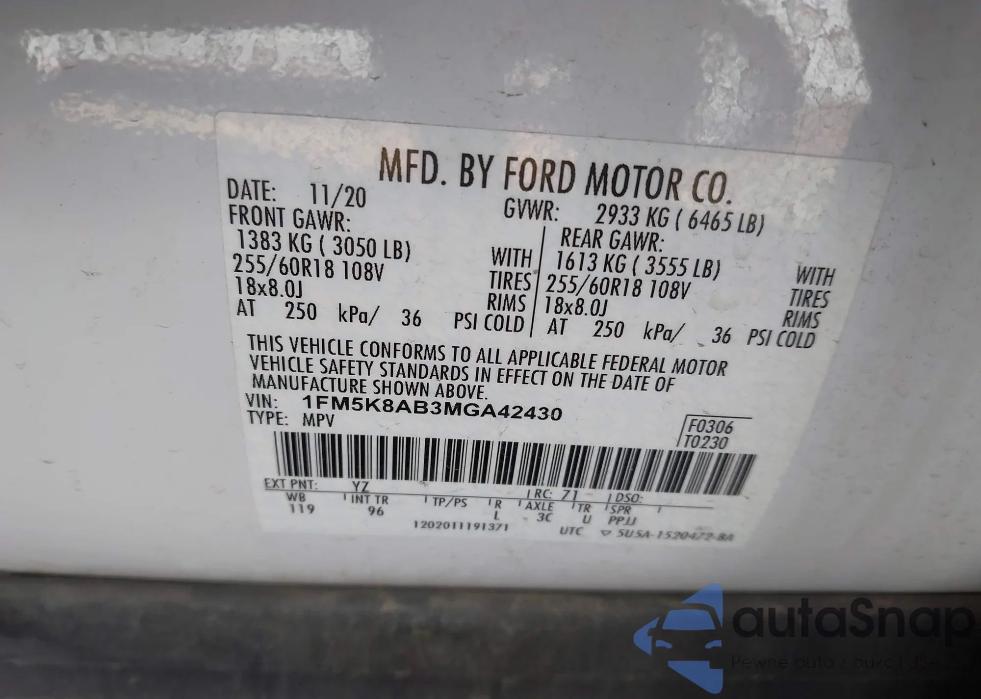 • VIN: 1FM5K8AB5MGA42430