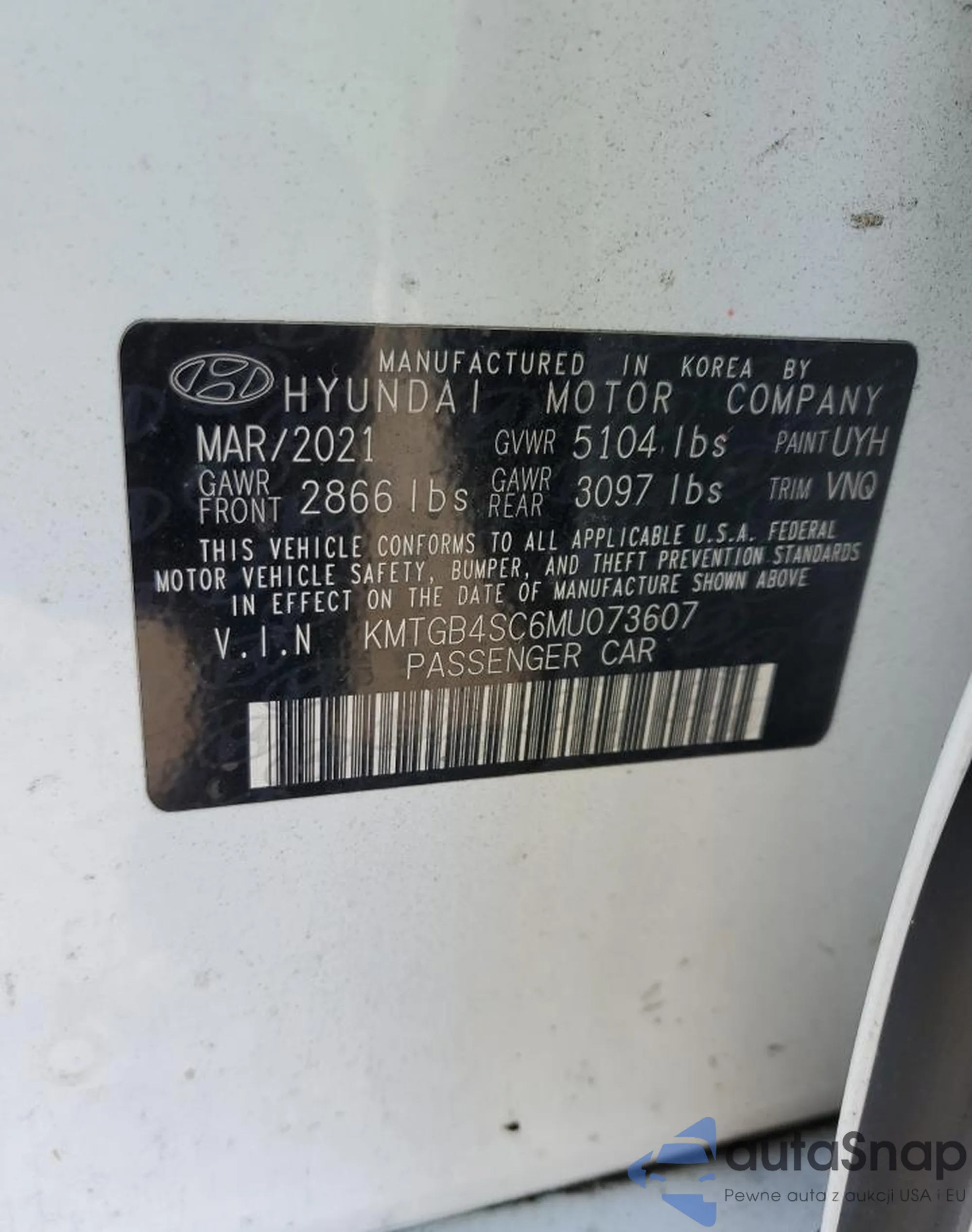 KMTGB4SC6MU073607 COPART