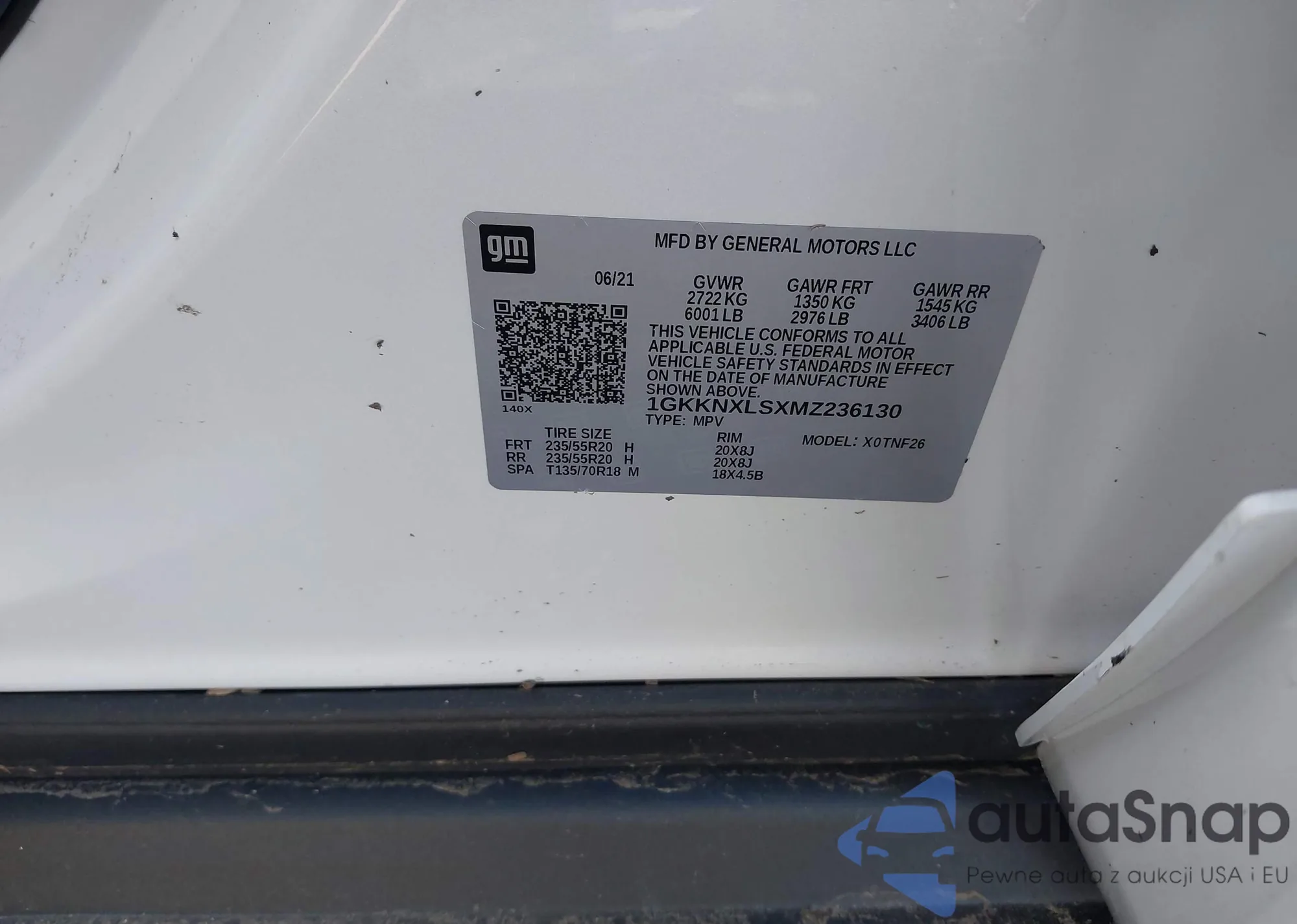 VIN: 1GKKNXLSXMZ236130
