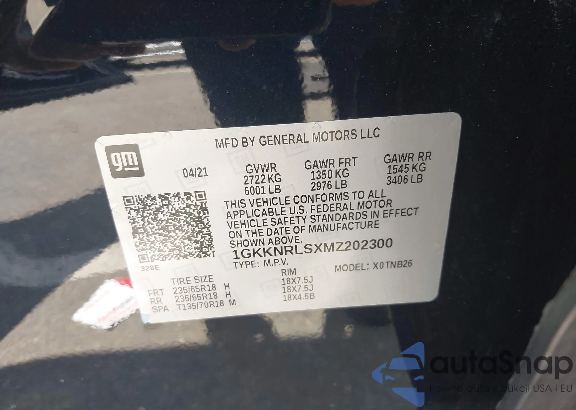 VIN: 1GKKNRLSXMZ202300
