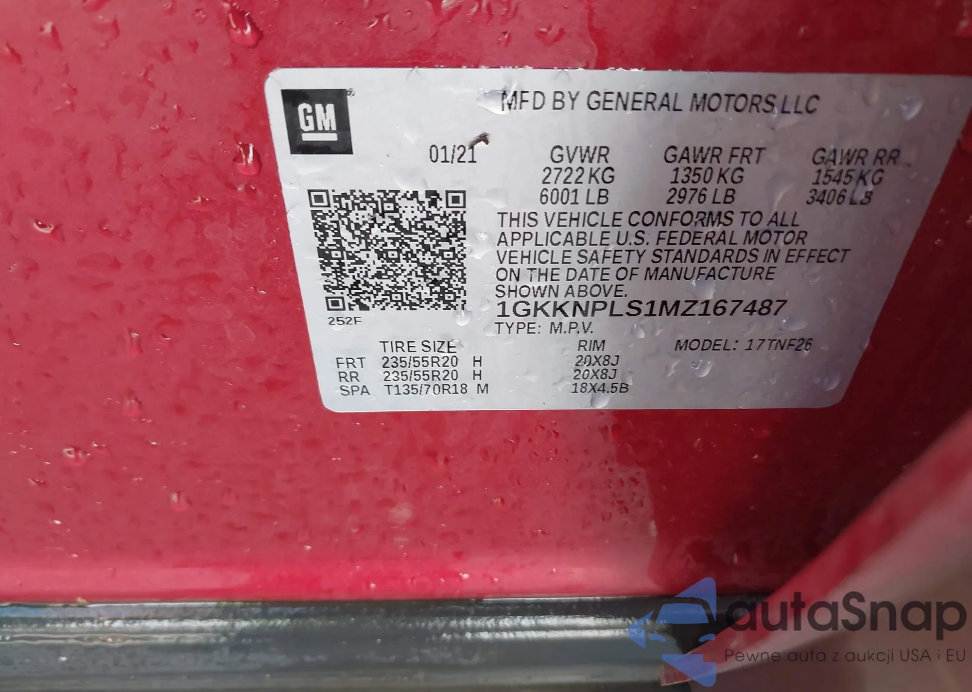 VIN: 1GKKNPLS1MZ167487