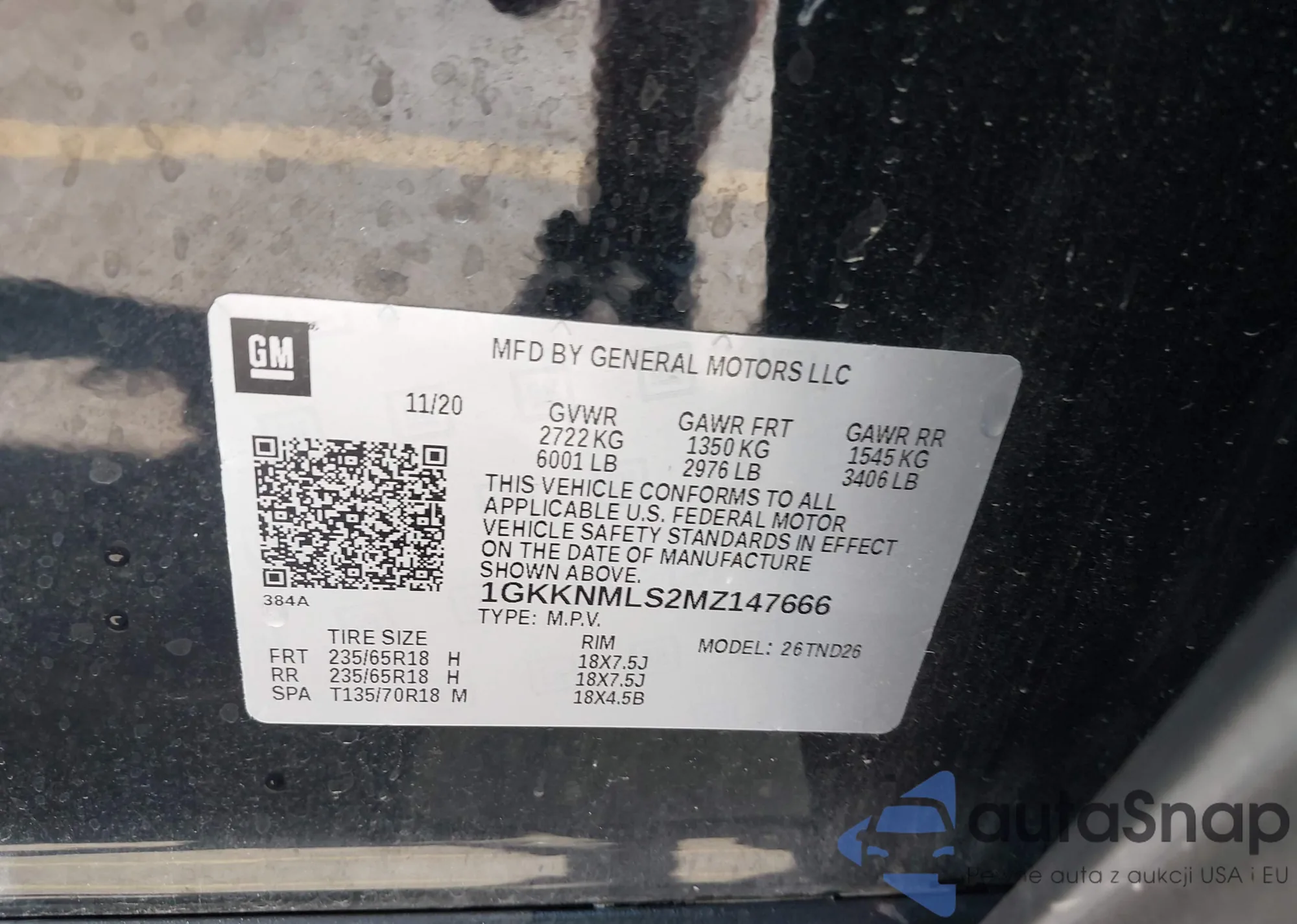 VIN: 1GKKNMLS2MZ147666